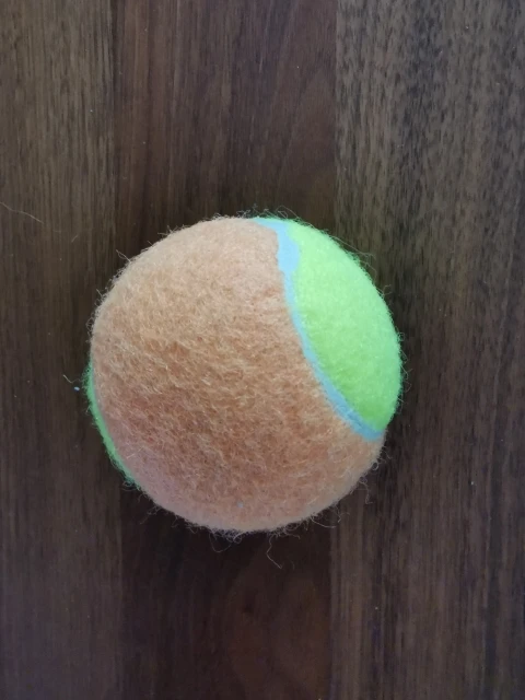 het is een gewone tennisbal en niet een hele grote zoals in de omschrijving staat