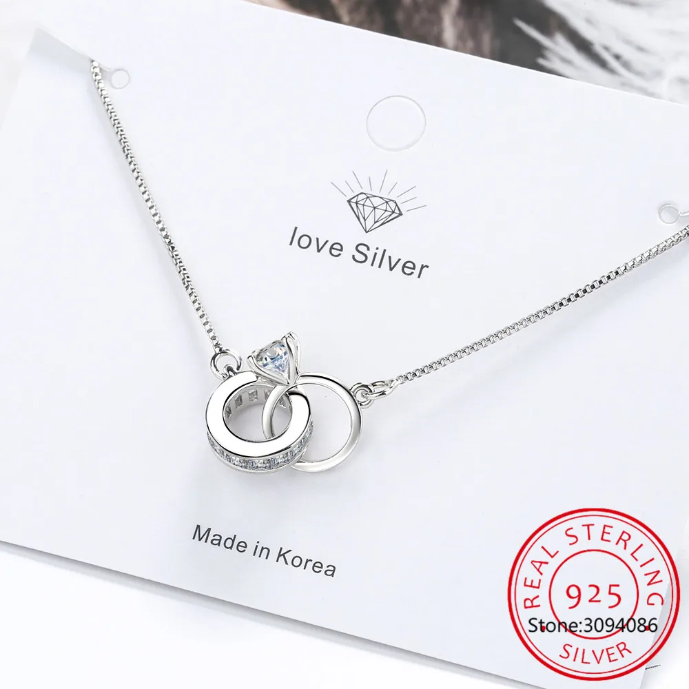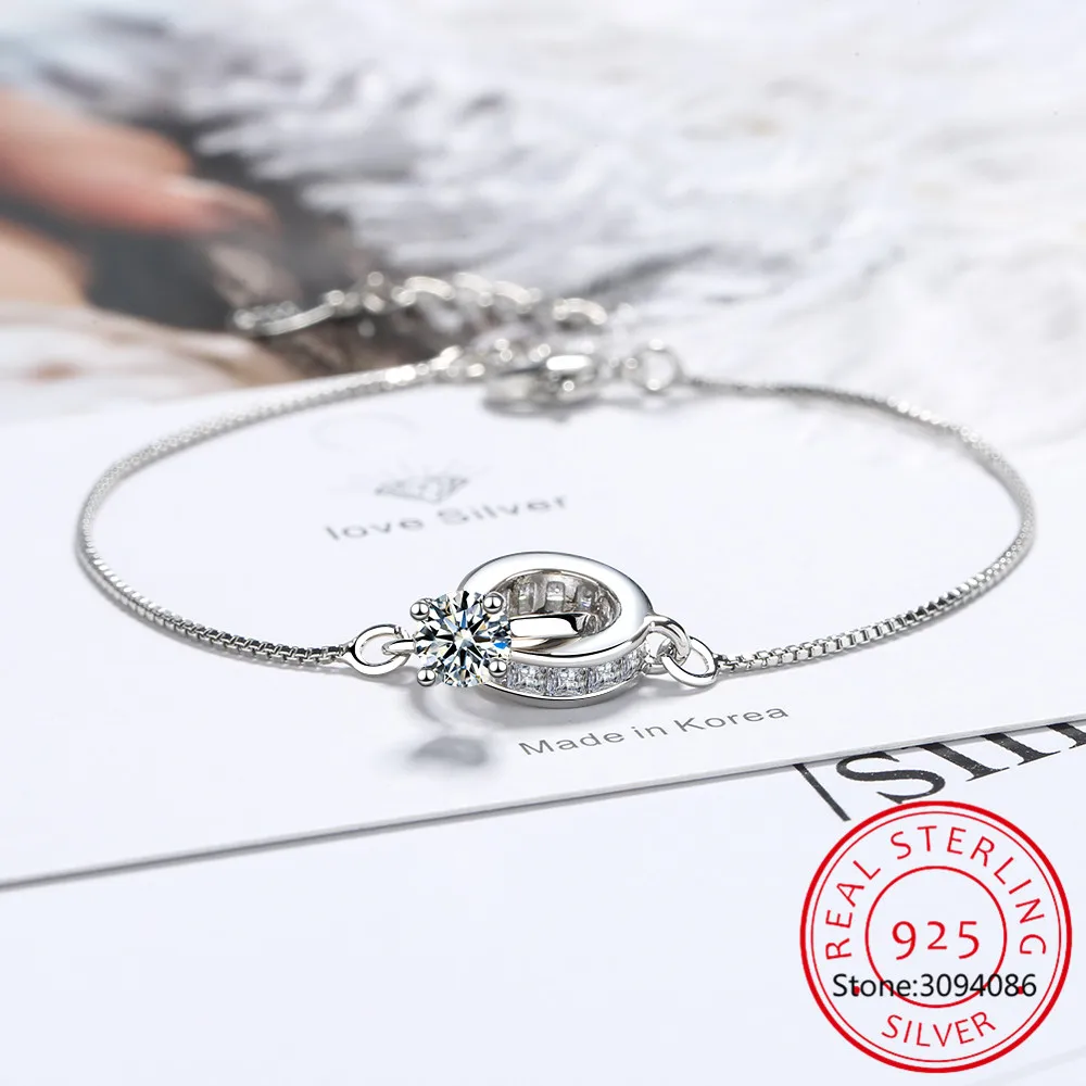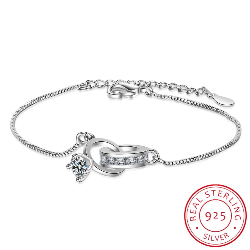 Женский браслет из серебра 925 пробы с двумя кольцами, геометрический браслет с цирконием, подарок на день Святого Валентина