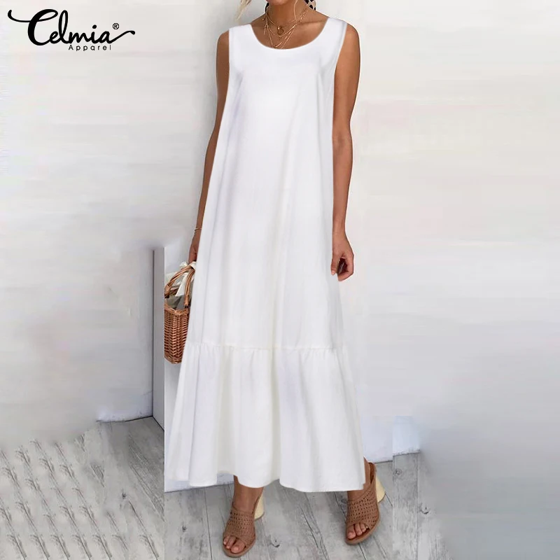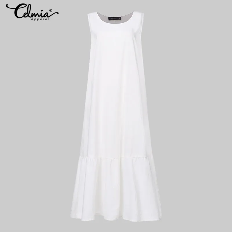 Платье Celmia женское длинное с оборками, модный пикантный длинный сарафан без рукавов, повседневный свободный хлопковый Пляжный наряд, лето 2021