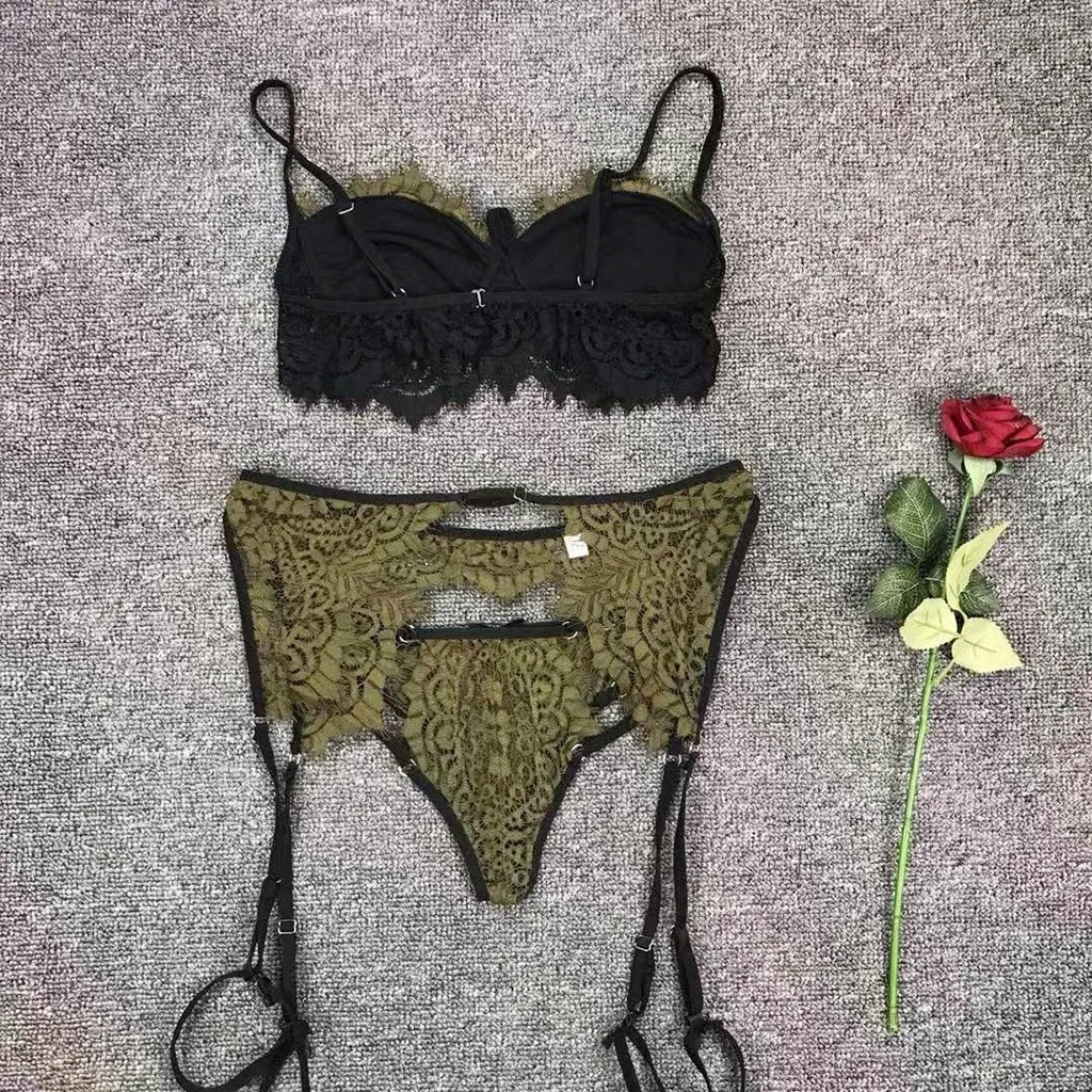 Комплект женского кружевного нижнего белья, бюстгальтер на бретельках и трусики, 3 шт.