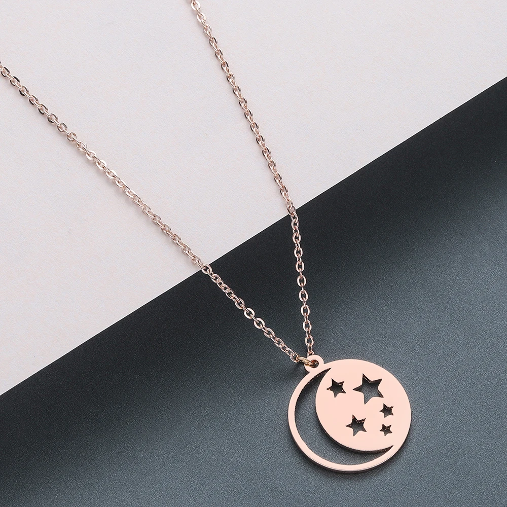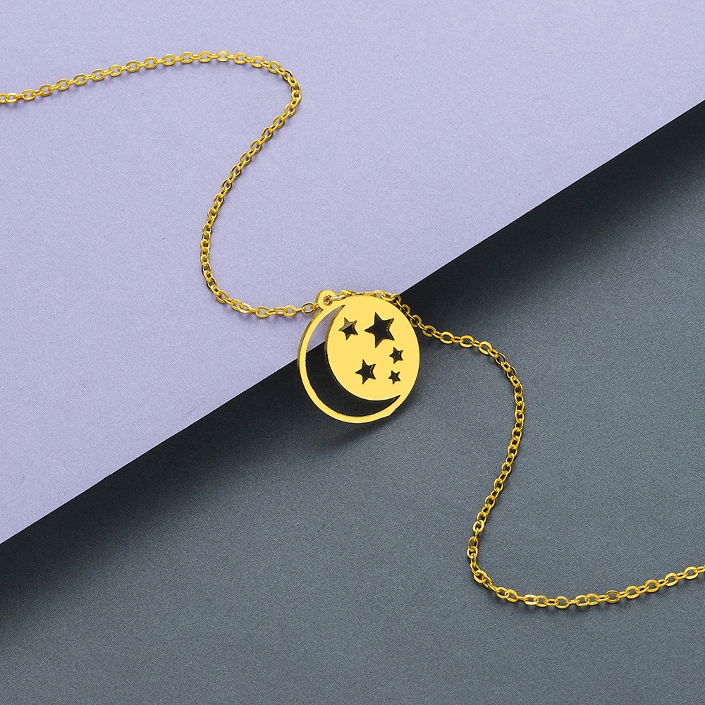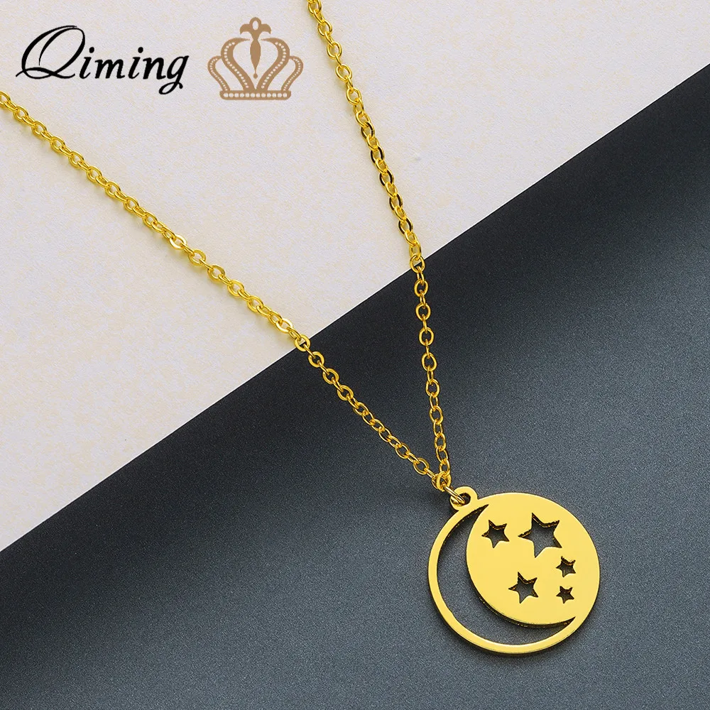 QIMING полумесяц ожерелье звезда очарование нержавеющая сталь золотые ювелирные изделия круглые женские ожерелья подвески подарок на день рождения