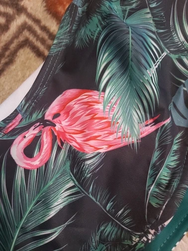 Невероятно красивый купальник. Принт потрясающий, смотрится ярко и экзотично. Рюши выполнены качество, они объемные и красиво смотрятся. На параметры фигуры 81/63/90 см размер S подошел. В чашечках есть поролоновые вставки, по желанию достаются. Советую к покупке!