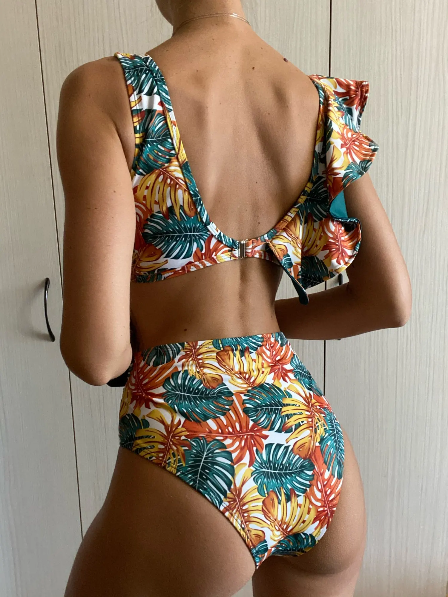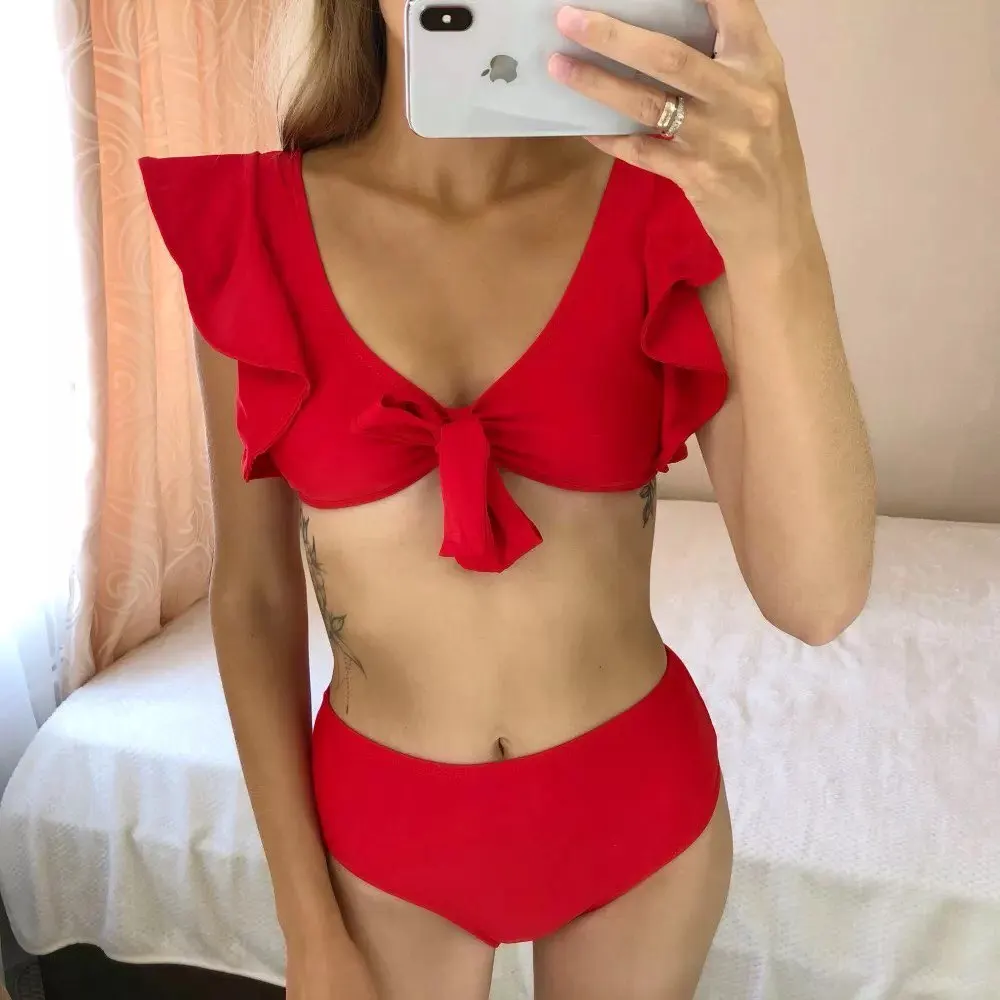 Бикини женское, с высокой талией, с рюшами, пуш-ап, лето 2021