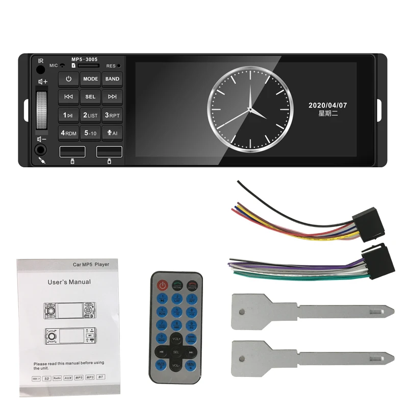 Автомобильное радио, 5,1 дюйма, 1 Din, MP5, USB, громкая связь, AUX, 12 В, цветная подсветка, Bluetooth, поддержка AI RM, RMVB, MP3, WMA, 720P, 4 канала