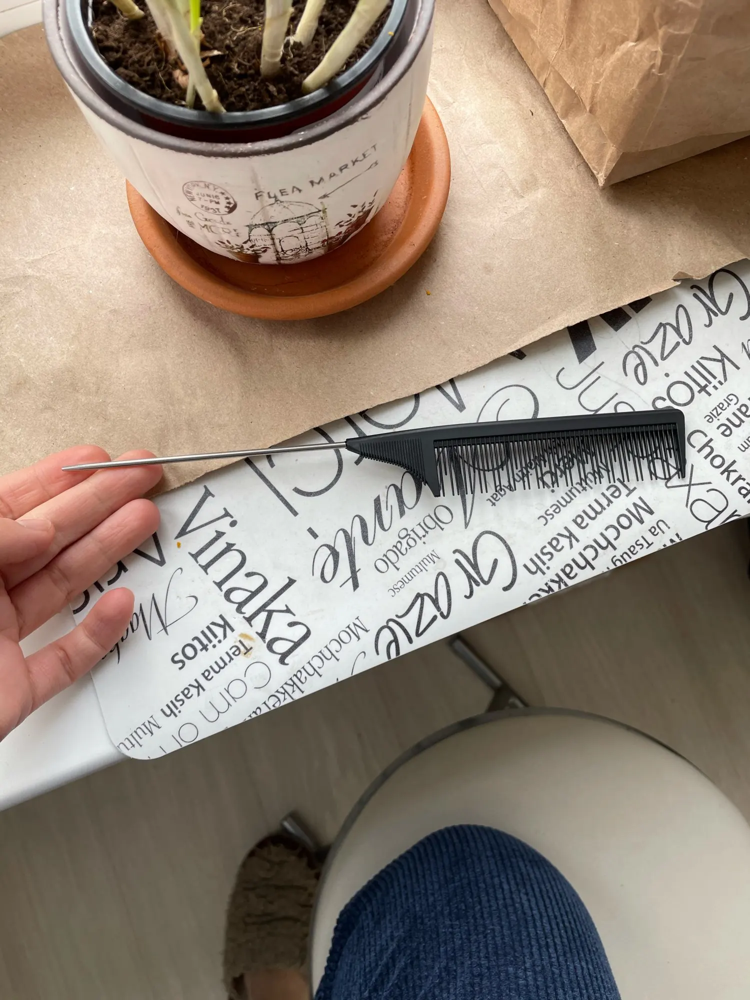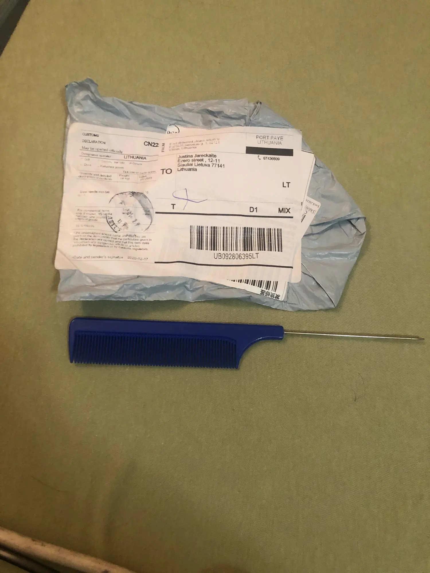 пришла быстро. расческа для мелирования супер, материал хороший, спица 10 см. Тони & Гай