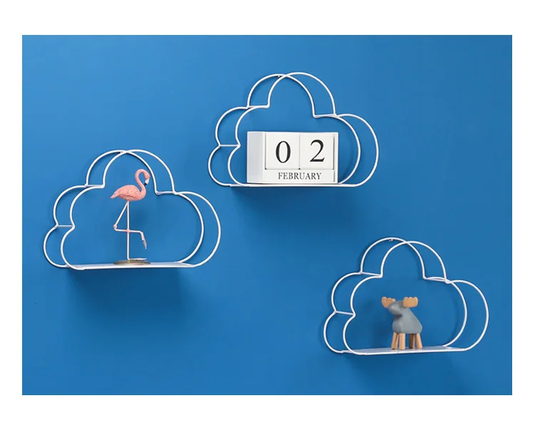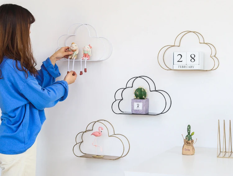 Настенная креативная железная стойка для хранения в форме облака с орнаментом, полка для украшений, подставка для детской комнаты, домашний декор