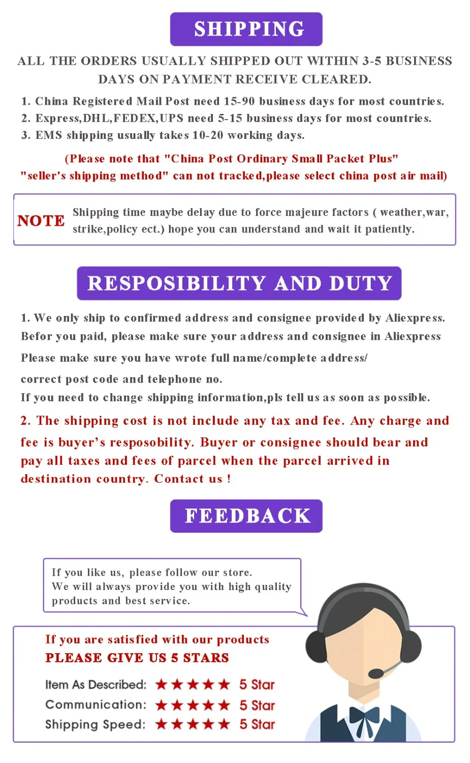 3 для бразильских клиентов, если вы хотите отправить по FedEx, DHL, TNT, UPS, пожалуйста, сообщите мнеНалоговый номер (CPF или CNPJ). Без него таможня вернет товары в Китай.