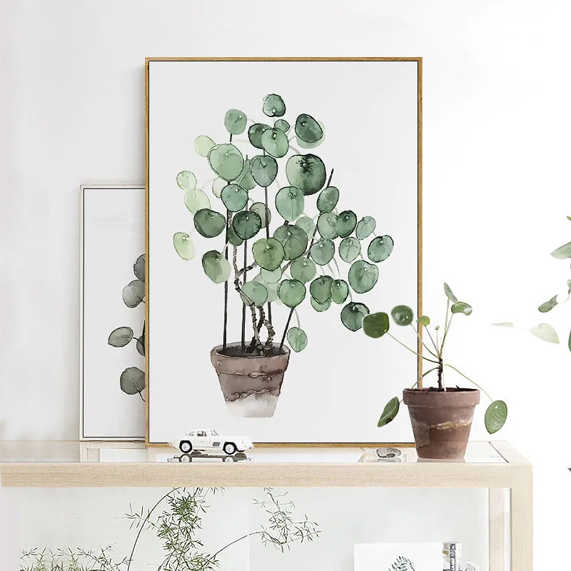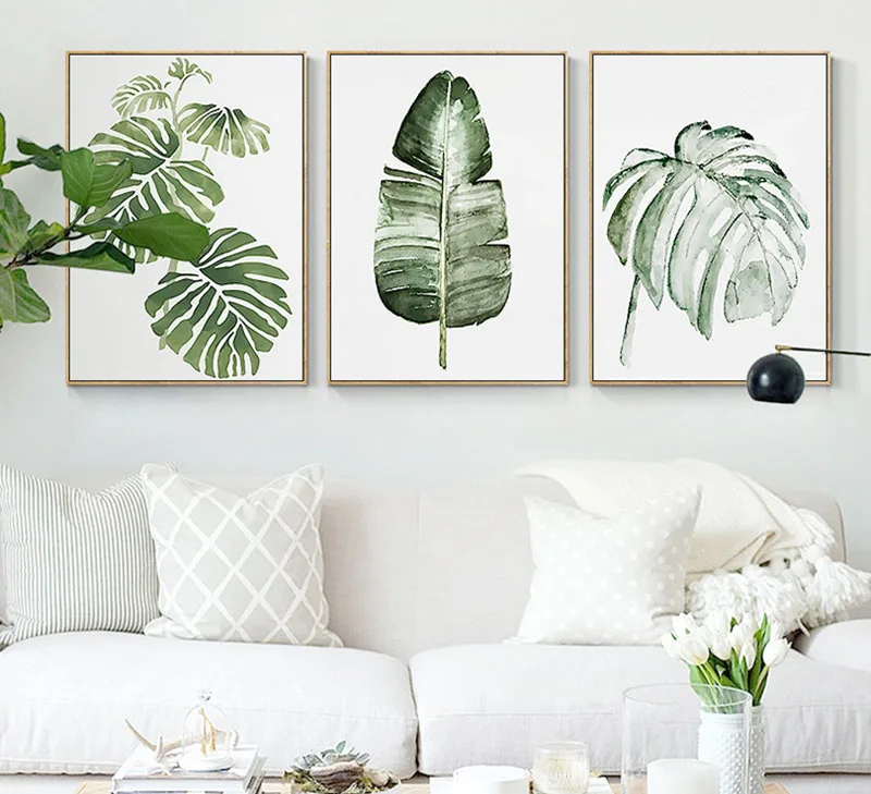 Постер в скандинавском стиле с акварельными растениями и листьями, Картина на холсте тропического зеленого монстера, современное настенное искусство, для крыльца, гостиной