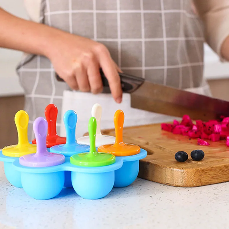 Силиконовая коробка с 7 отверстиями для пищевых продуктов, 7 цветов, поднос для мороженого с фруктовым мороженым, сделай сам, форма для свежего мороженного, Детская пищевая добавка, коробка