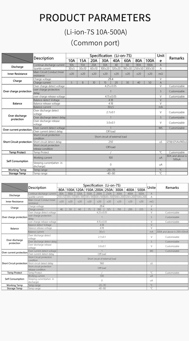 Дейли BMS 18650 литиевая батарея литий-ионный фотоаппаратов моментальной печати 7S bms 24V 15A 500A общий порт с балансом для солнечной батареи