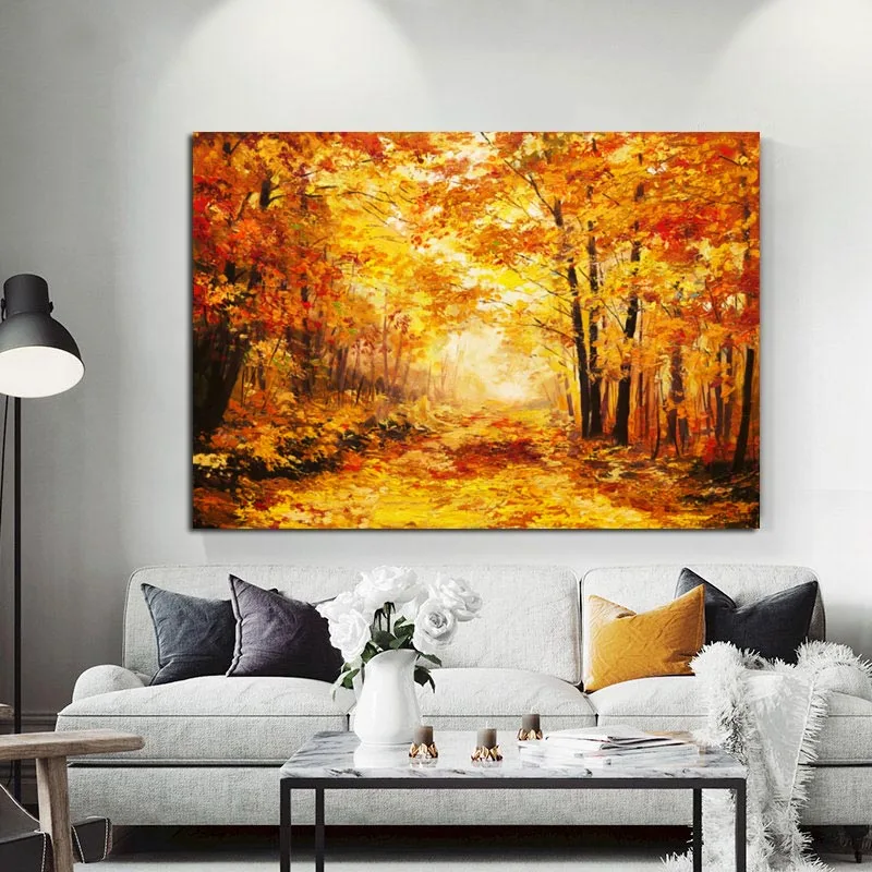 Картина маслом печать стены Искусство Пейзаж Плакат Осеннее дерево картина холст картины для гостиной украшение стены