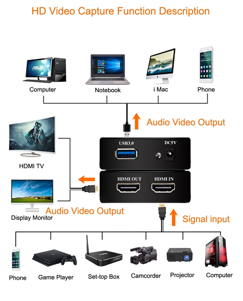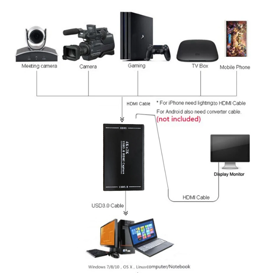 Карточка видеозахвата USB 3,0, 4K x 2K HD, 1080P, 60 кадров в секунду, для OBSvMixWirecastXsplit TV Box