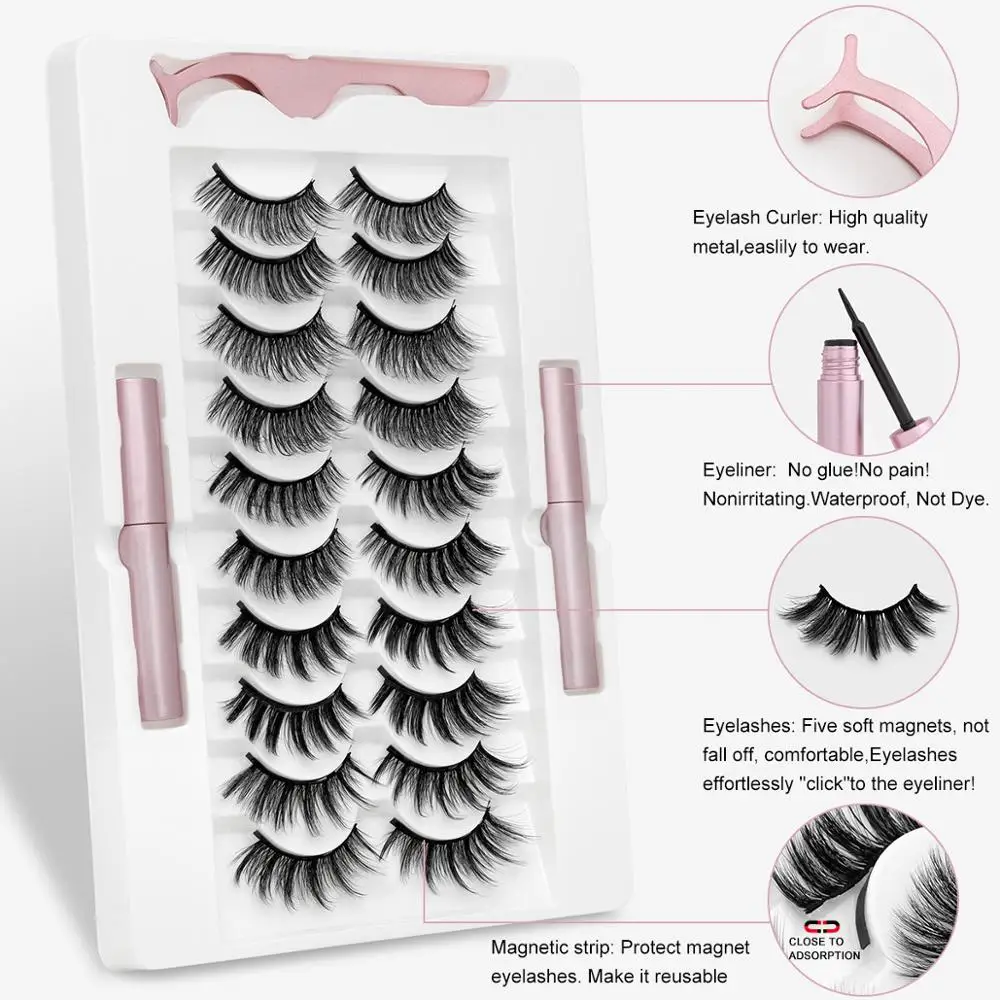 Без клея! Нет боли! Никаких химических веществ! Подводка для глаз использует Ультратонкие магнитные частицы и не вызывает раздражения.Легкий макияж для глаз, это занимает всего одну минуту, чтобы прослужить целый день.Мягкое и удобное качество, специальная и водонепроницаемая формула не вызывает головокружения.