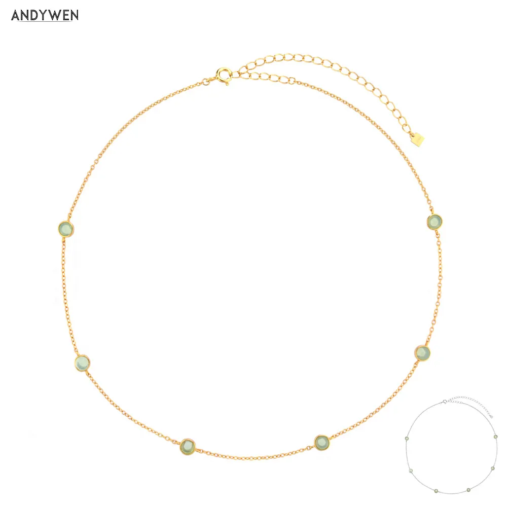 ANDYWEN 925 пробы серебряные золотые прозрачные бирюзовые подвески 4 мм циркониевые цепочки ожерелье-чокер 2020 Рок Панк изящные ювелирные изделия