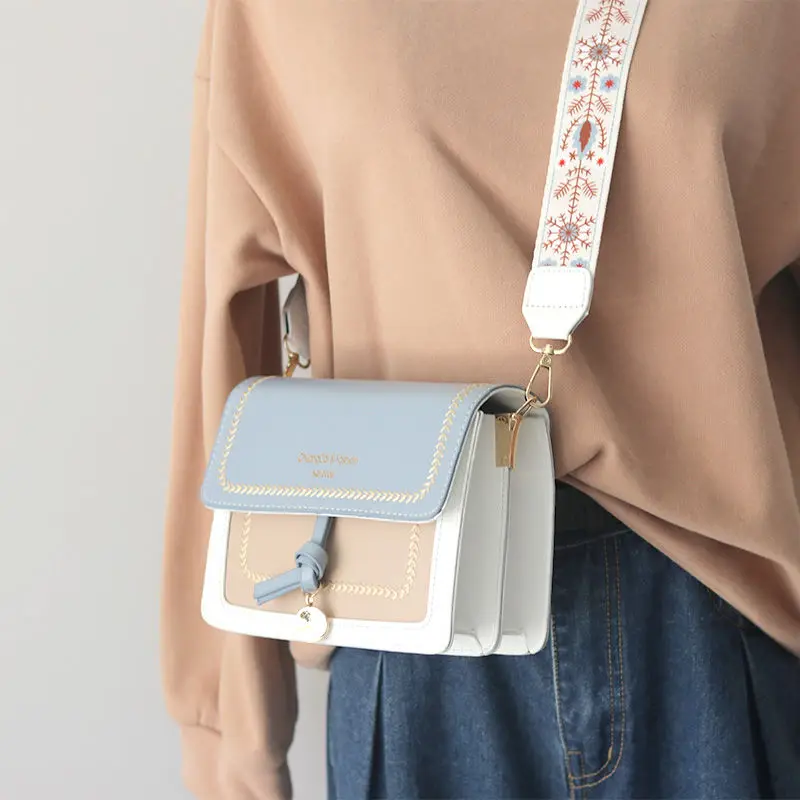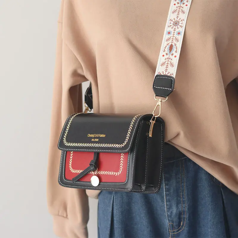 Женская сумка через плечо с широким богемным цветочным ремешком из искусственной кожи с маленьким клапаном, женские сумки, кошельки, бесплатная доставка