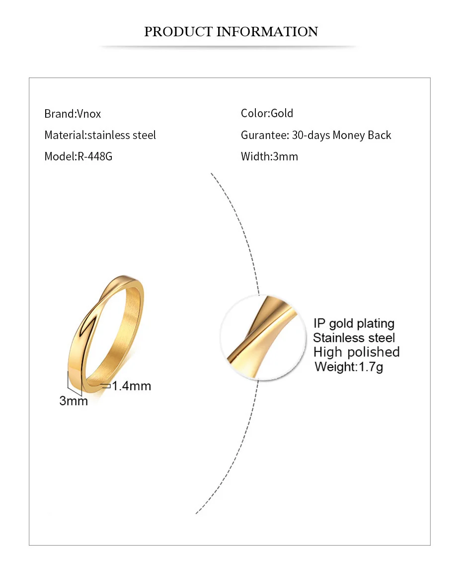 Vnox шикарный витая веревка тонкий кольцо для женщин, нержавеющая с...