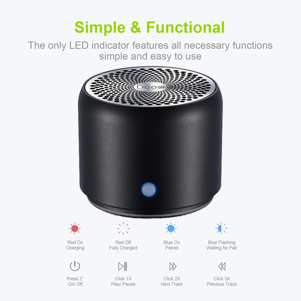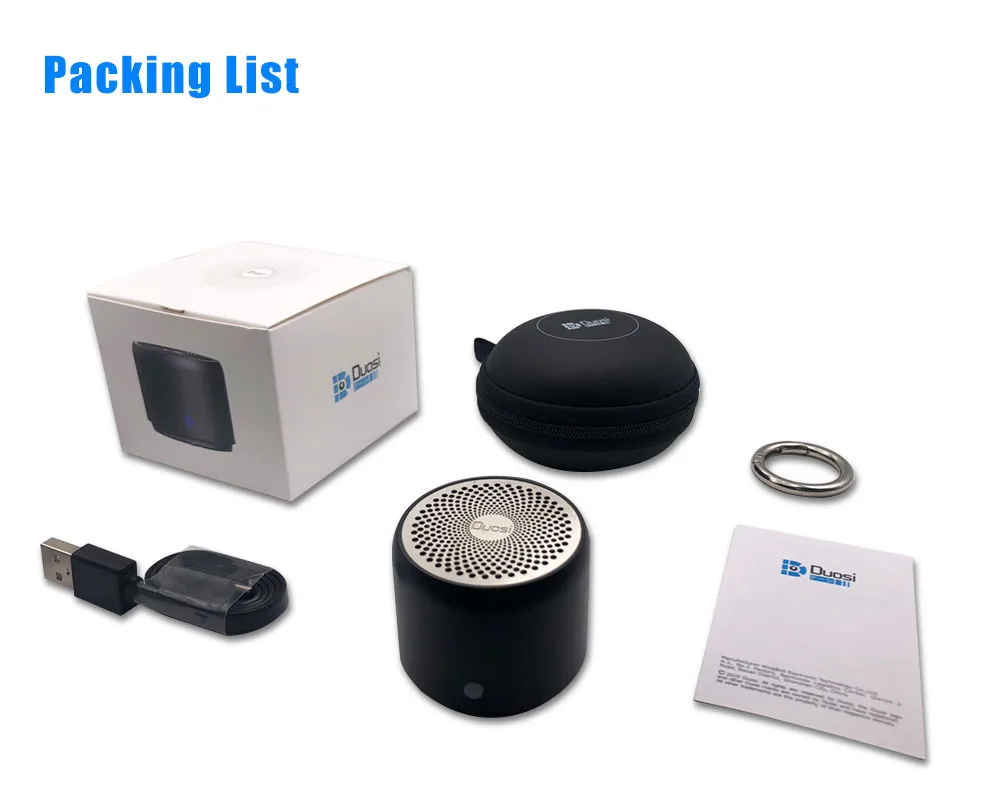 Весом 6,2 унций и measuringΦ1.89 * H1.54 дюйм (ов), а также с динамиком, вы получите металлический крюк и переноски чехол, который позволяет вам свою музыку туда, где бы вы ни находились, А также Защитите ваш портативный динамик Duosi DY-506 от повреждений. Таким образом, он идеально подходит для улицы, пешего туризма, пляжа, комнаты в общежитии, кухни, ванной комнаты, лодки, гольф-машины и многое другое.
