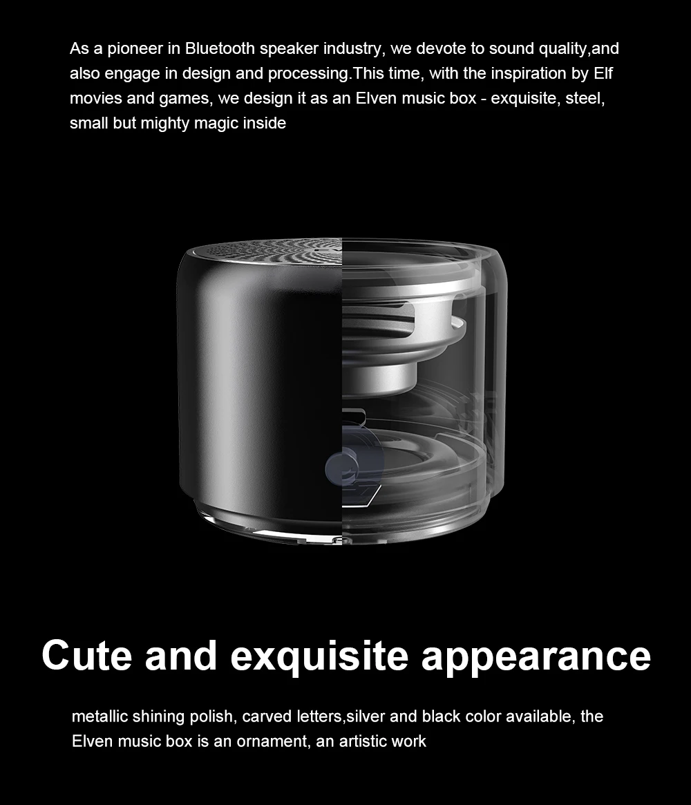 Наше видение было сделать небольшие беспроводные колонки с bluetooth, который является просто динамиком, так что вы можете использовать его в любое время и в любом месте. Мы отказываемся от функции, такие как, микрофон, 3,5 мм Джек и ненужных кнопок, в результате чего один из них силиконовая кнопка (удерживайте, чтобы переключатель вкл/выкл, одно-коснитесь, чтобы сделать паузу, двойной или тройной кран для переключения песен), идеальный подарок.