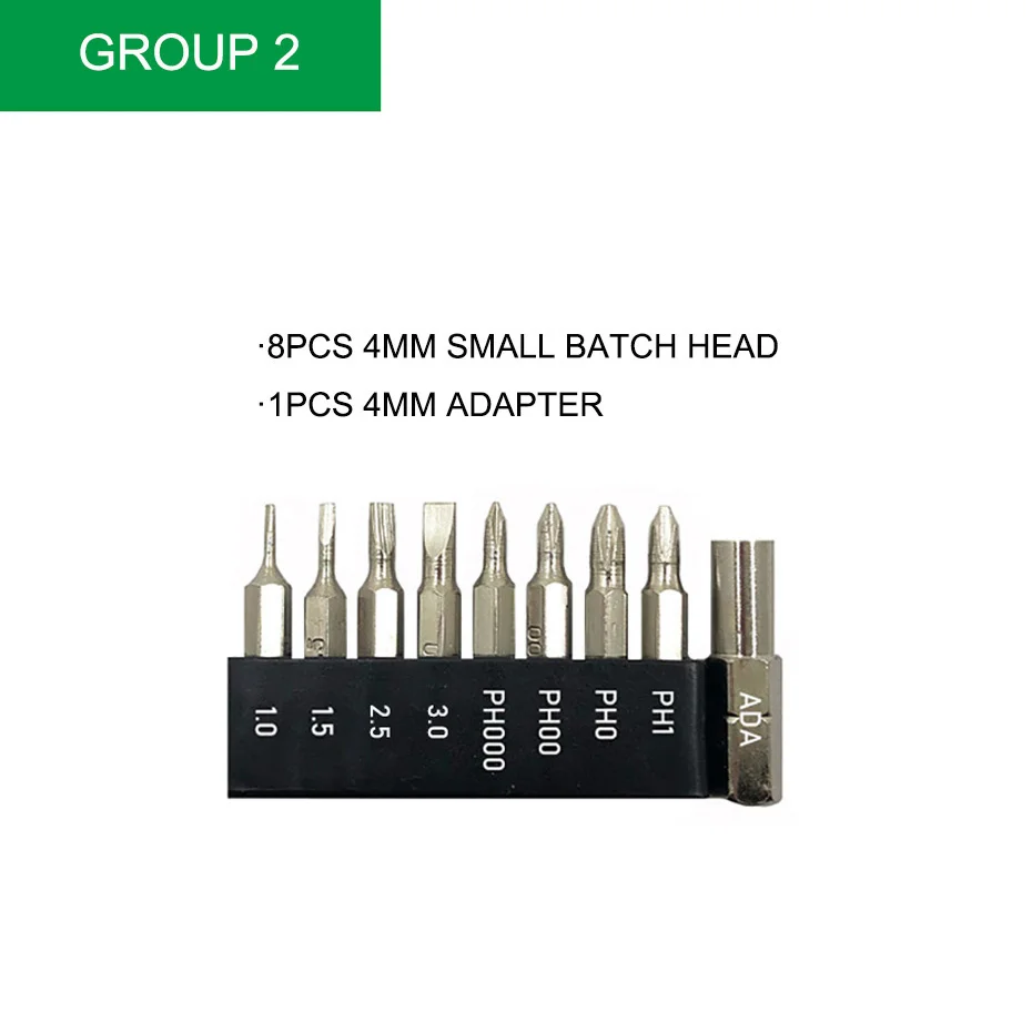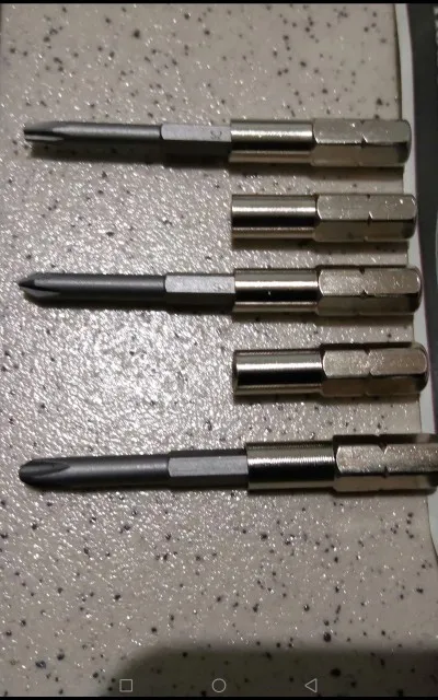 Простые битки под 4 мм с переходником. с 6.35 на 4мм. Брал чтобы доукомплектовать имеющийся набор. Обточенны маловато по сравнению с теми что есть у меня в наборе. И потому длины кончика может где то нехватить. А в целом хороший комплект бит.