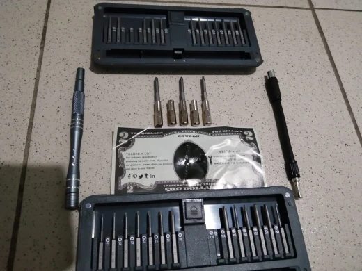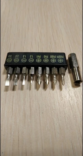 Быстрая доставка 5post - 10 дней. Отличный набор, брал из-за переходника. Магнит сильный, но люфт есть и он заметен. Два адаптера превращаются в часовую отвертку, теперь думаю сделать накатку на адаптере мультитула для удобства, хотя под такое дело можно купить мини вороток или г-образный ключ. Если бы в наборе были ещё HEX, TORX и PZ цены бы не было даже будь он дороже. А так все отлично, я доволен.