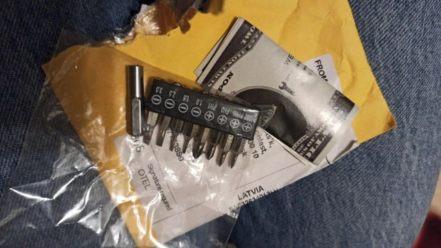 Посылка пришла в Москву за 10 дней!!! Набор отлично подошел к электрической отвертке. Биты плотно держатся, не выпадают.