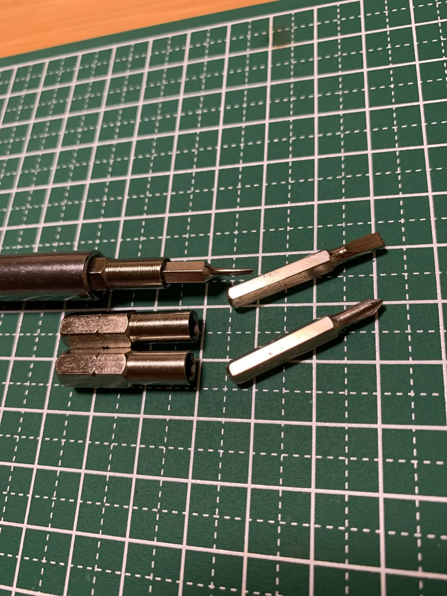 Отличные адаптеры. Как при установке адаптера в отвертку нет люфта посадочного 1/4", так нет и люфта бит 4мм. держатся магнитом плотно. Вынимаются с заметным усилием из адаптера