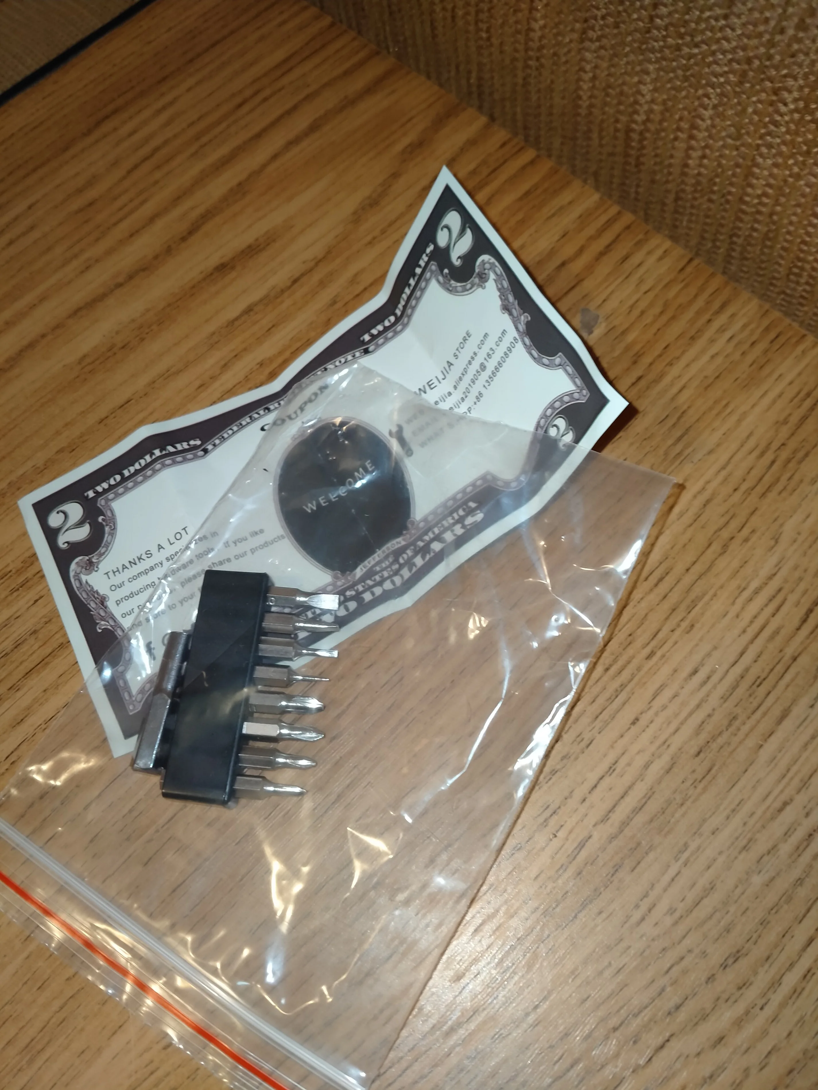 Биты качественные, центровка хорошая. Отправлено и доставлено очень быстро, несмотря на то, что товар недорогой. Обычно такой мелкий товар доставляется месяц-два. Пришло быстрее намного более дорогого товара, заказанного у другого продавца. Доставка отслеживалась, так номер действительный. Продавец молодец, побольше бы таких на Али. Спасибо и удачи в бизнесе.