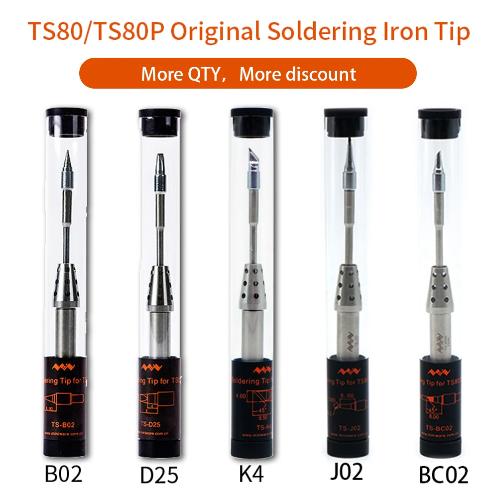 Оригинальное паяльное жало TS B02 BC02 D25 K4 J02 TS80 TS80P, Сменная головка для паяльника, керамический нагревательный сердечник без свинца