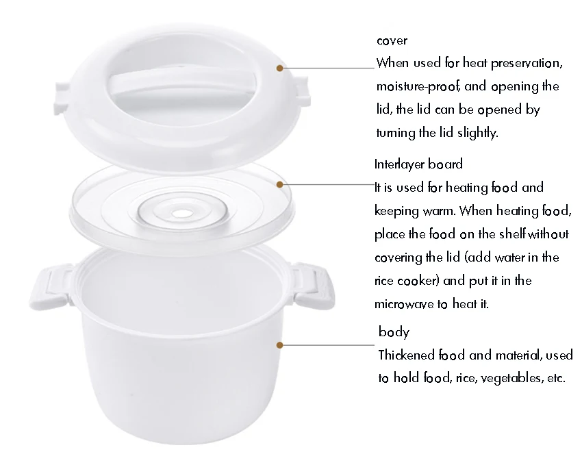 Микроволновая рисоварка с ручкой, без БФА, простая в использовании Пароварка, контейнер для рисоварки, посуда, белая, диаметр 1415,5 см