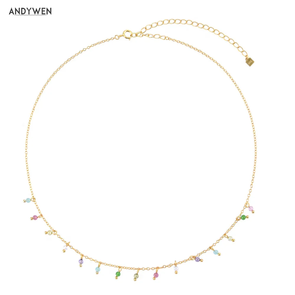 Цепочка-чокер ANDYWEN из стерлингового серебра 925 пробы с подвесками золотистого цвета с несколькими знаками, ожерелье-чокер 2021, подвеска с бусинами в стиле рокпанк, зимняя бижутерия