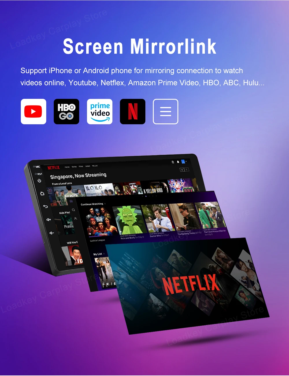 Function 1Support mirroring to connect Android phones and iPhones to watch apps such as Youtube and Netflix, making the journey more interesting and exciting