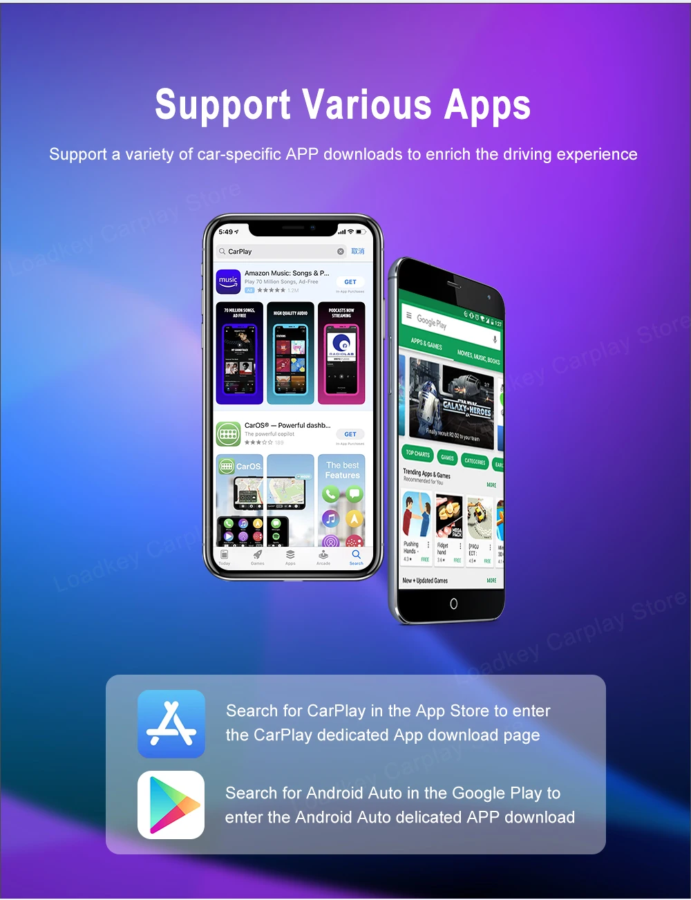 ✔1. Этот продукт поддерживает только систему Android car/radio/navigation/car display, не поддерживает оригинальную автомобильную систему, пожалуйста, подтвердите, является ли ваш автомобиль системой Android 4,4 выше, прежде чем покупатьМы рекомендуем вам попробовать установить наше приложение Autokit на ваше автомобильное радио перед покупкойAutokit Ссылка для скачивания: http:/121.40.123.198:8080/autokit/autokit.apk✔2. Беспроводная версия поддерживает только iPhone wireless CarPlay, телефоны Android не имеют беспроводного подключения