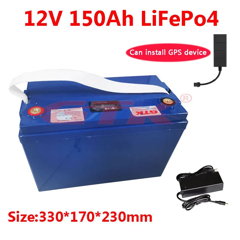 Светодиодный аккумулятор 12 в LiFePO4, литиевая аккумуляторная батарея глубокого цикла 150 ач, солнечная батарея с GPS позиционированием и зарядным устройством 10 а