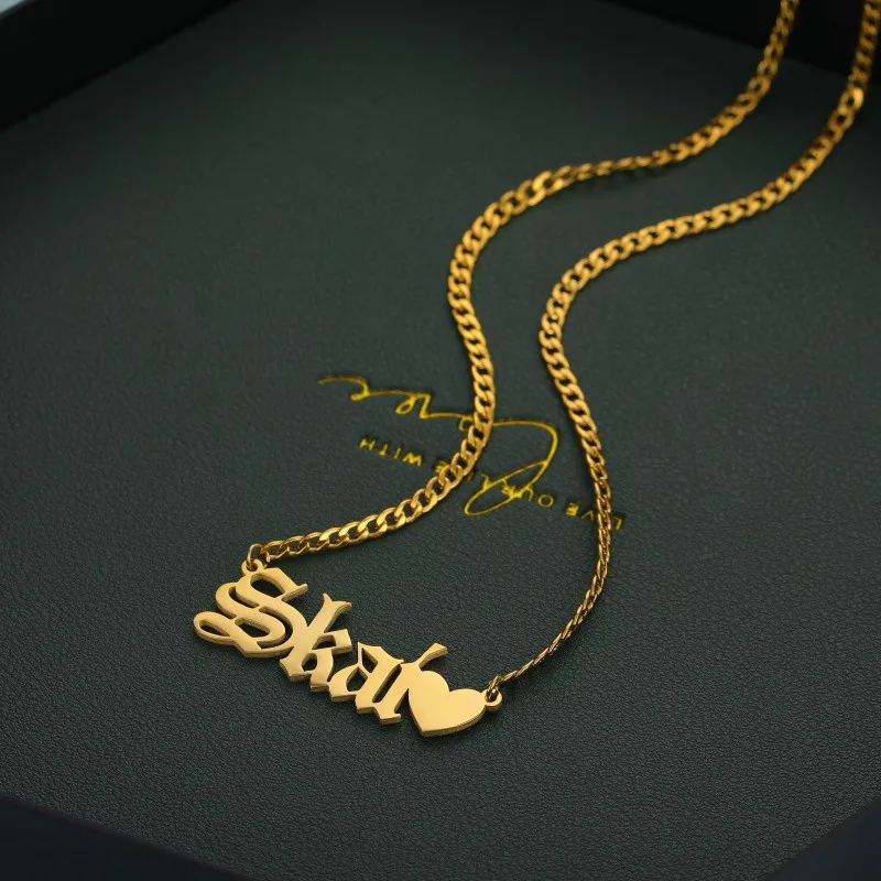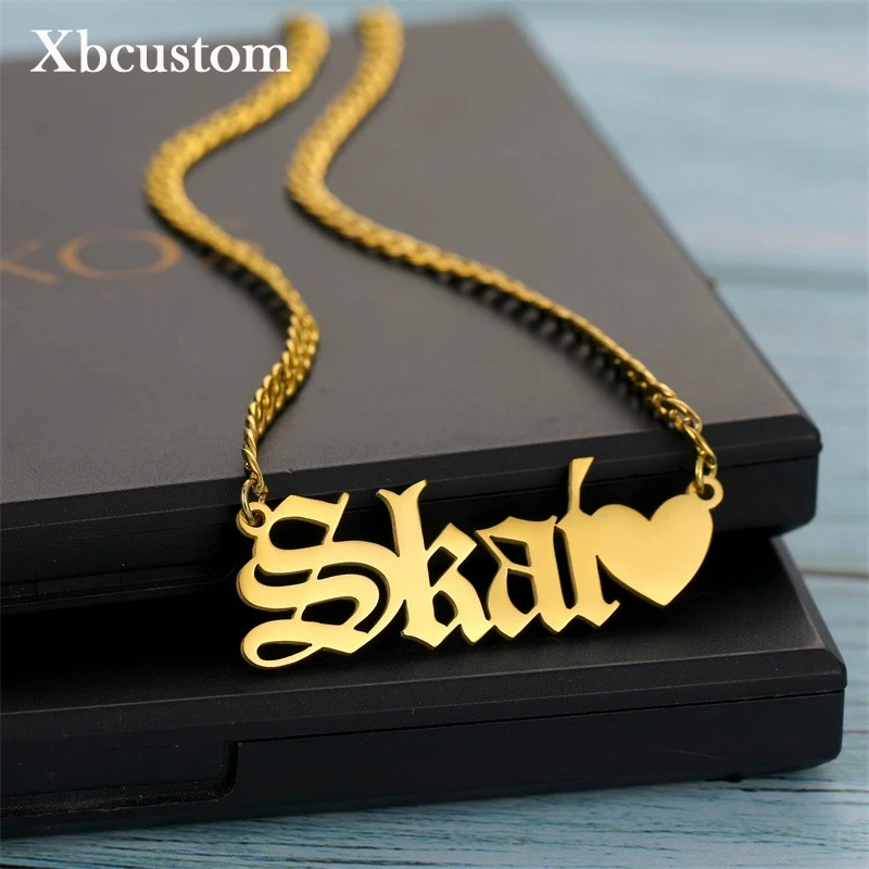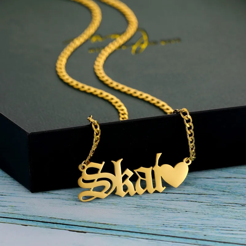 Old English Custom Name NecklacesStainless Steel Chain Nameplate Necklace