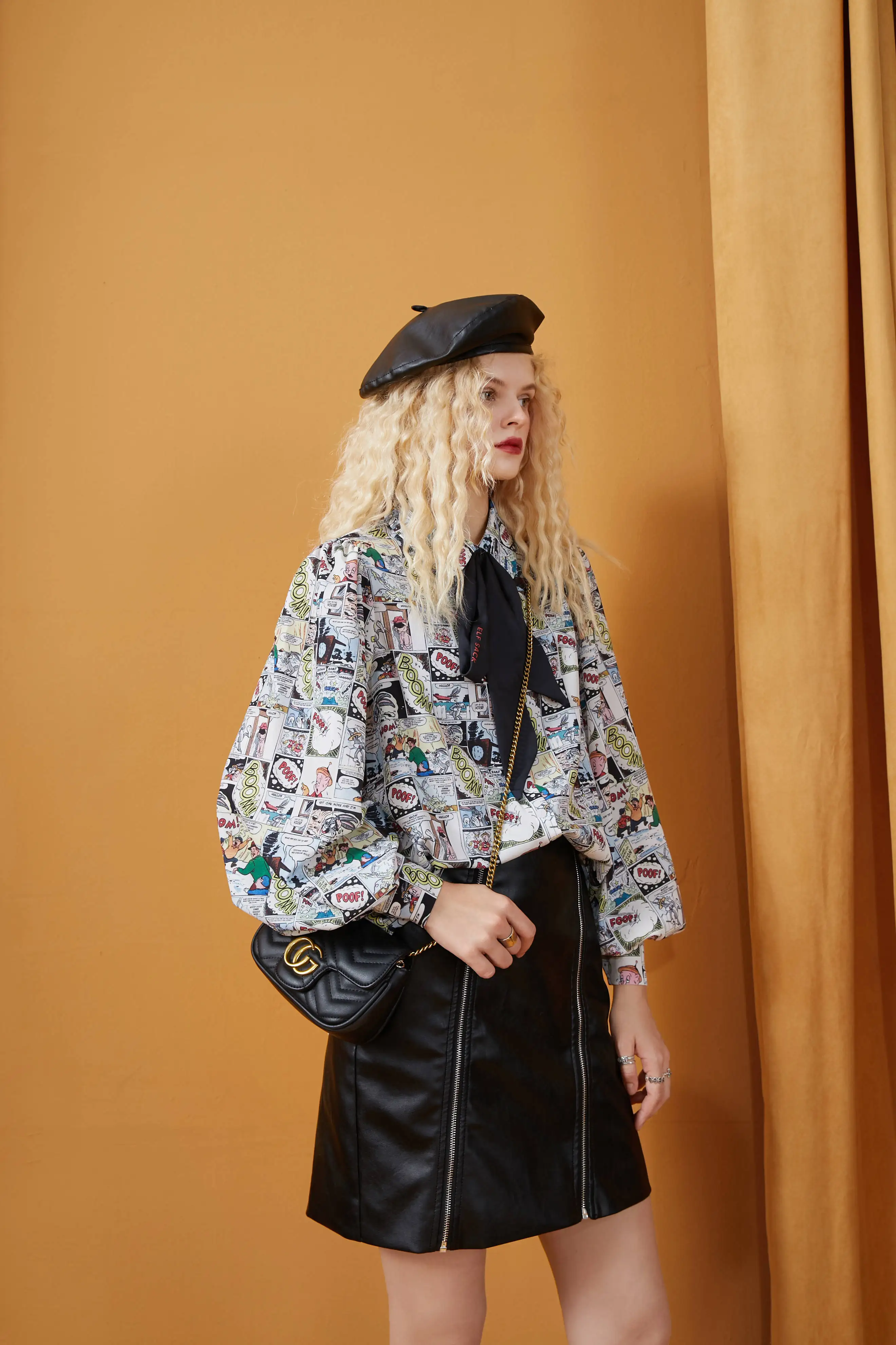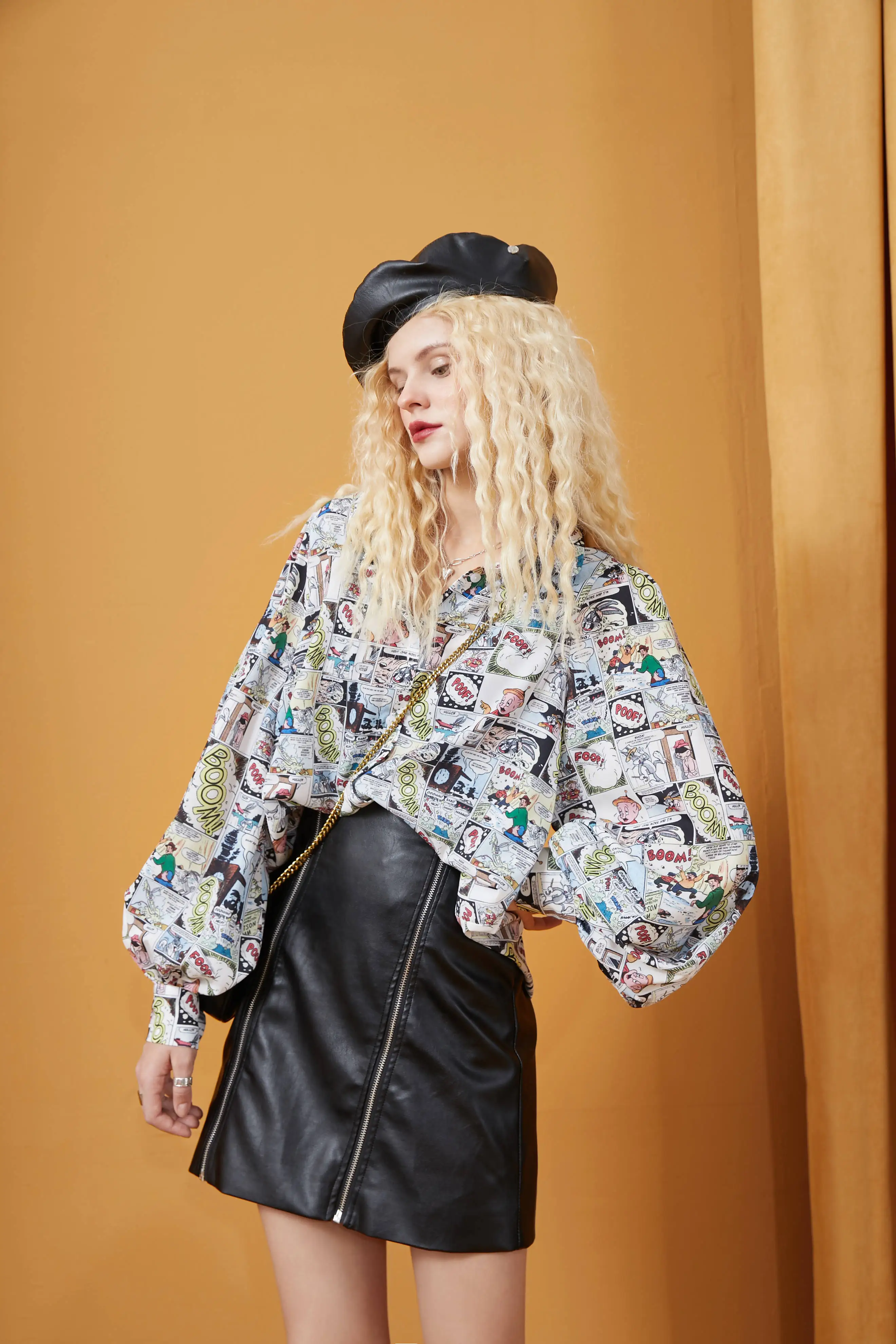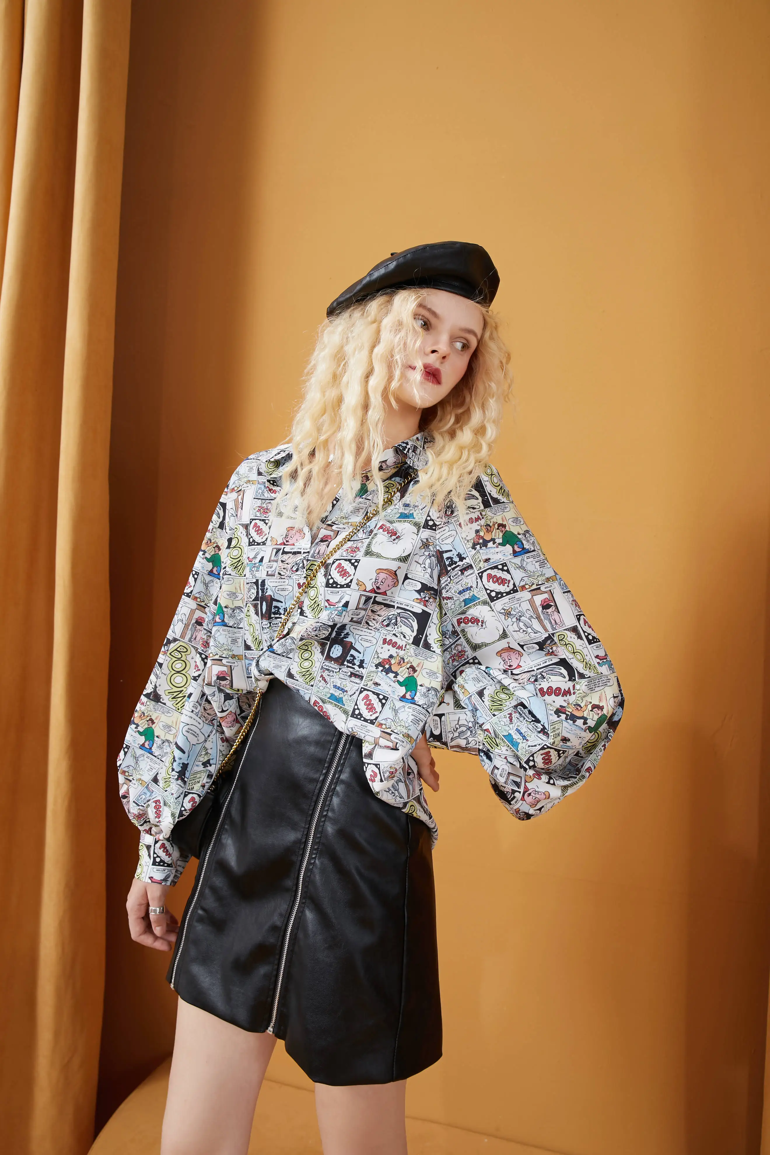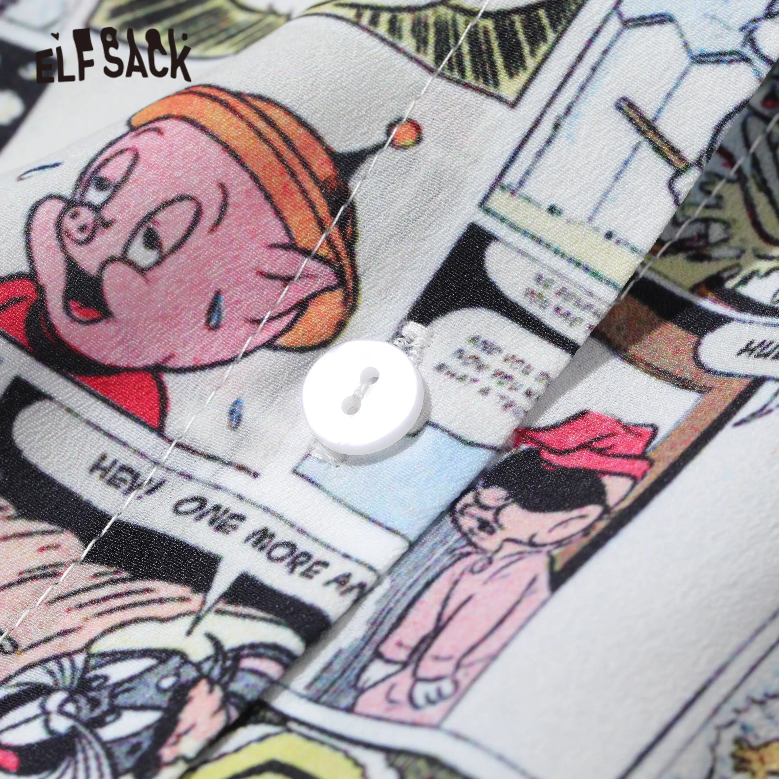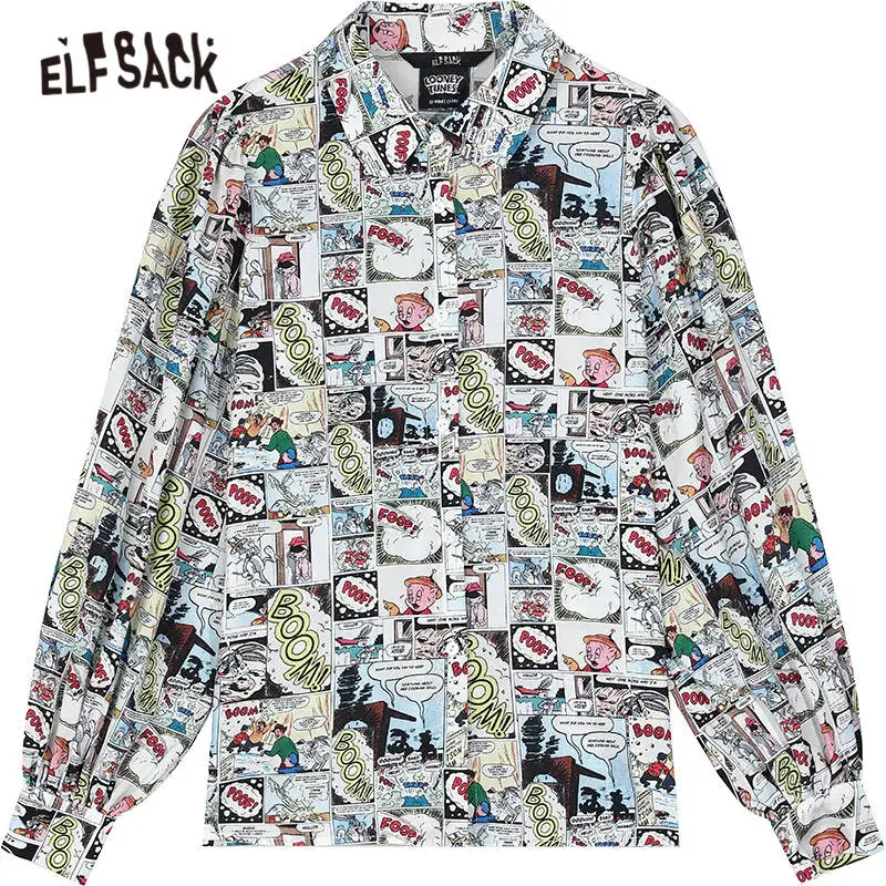 Женская однобортная Повседневная рубашка ELFSACK с забавным графическим принтом, осенняя винтажная рубашка ELF с рукавами-фонариками, повседневный топ в Корейском стиле, 2020