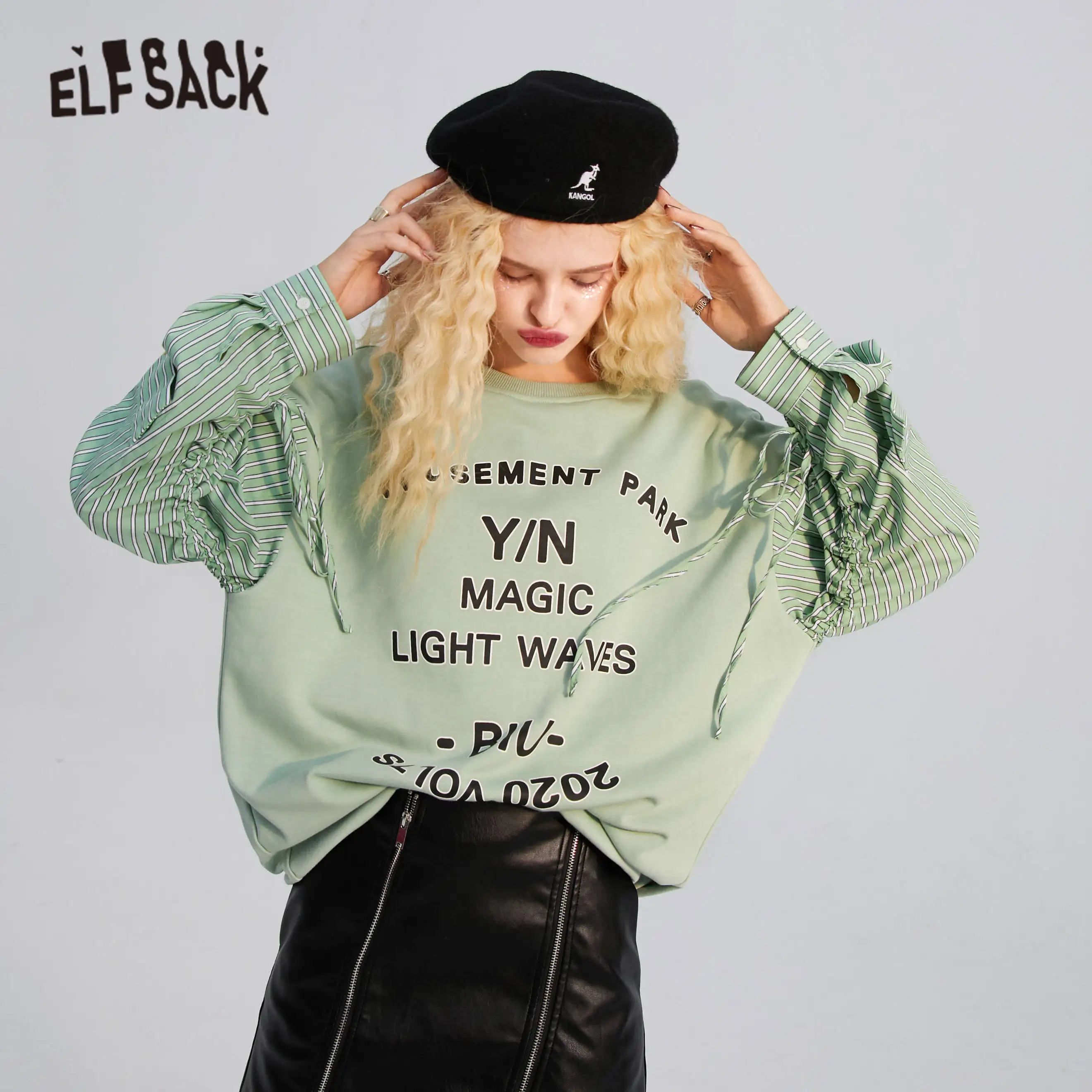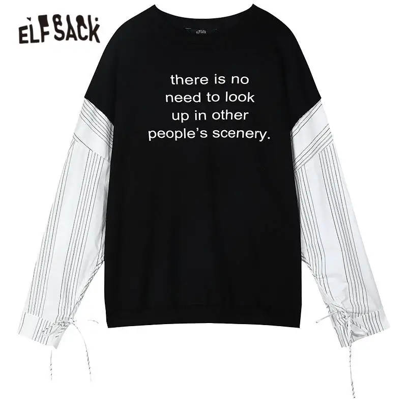 Женский Повседневный пуловер ELFSACK Harajuku с буквенным принтом оверсайз, повседневный топ с длинными рукавами в Корейском стиле, осень 2020