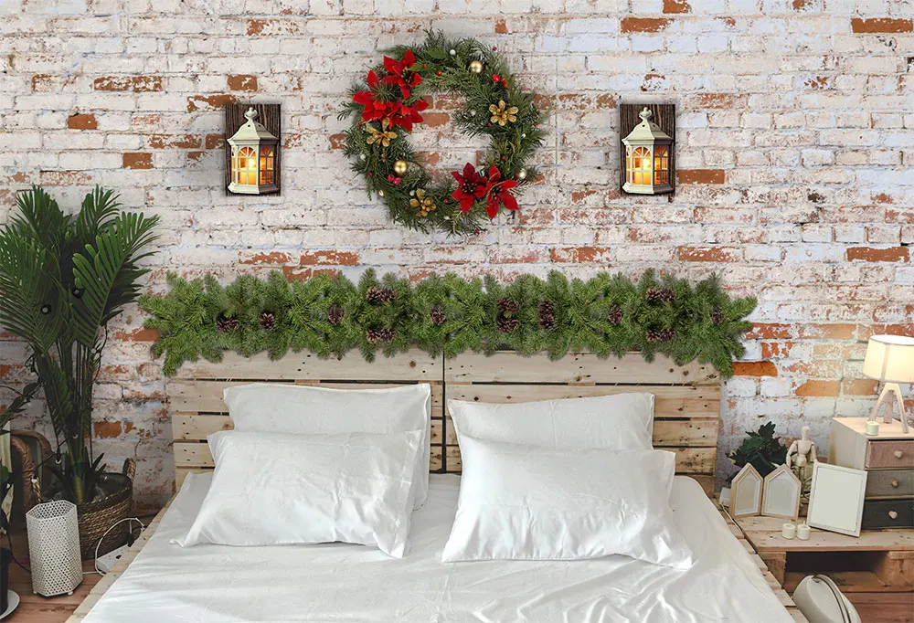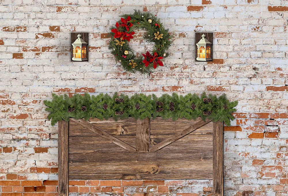 Рождественский изголовье фон для Ветхого кирпичной стены Рождественский венок, декор день рождения Фотостудия Фото фоны