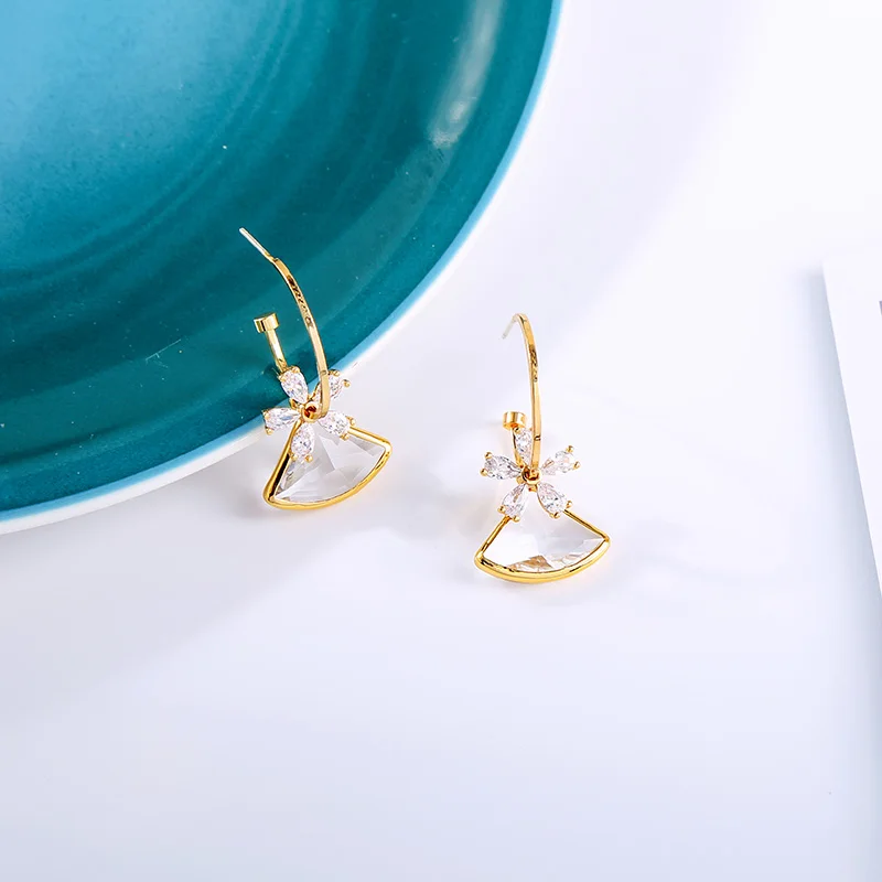 Production FeatureSimple Design Glass Brass Multi Color Zircon Earrings