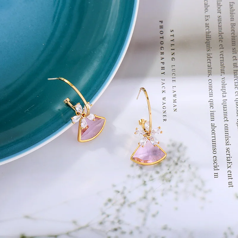 keywordSimple Design Glass Brass Multi Color Zircon Earrings