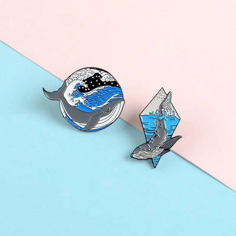 Эмалированные Металлические Булавки с морской волной и Китом для женщин, милые ювелирные украшения для друзей, подарочные украшения в стиле Гарри