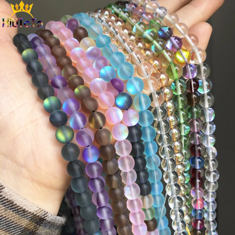 Бусины круглые из стекла, с блестками, для изготовления ювелирных изделий, 15 дюймов, 6, 8, 10 мм
