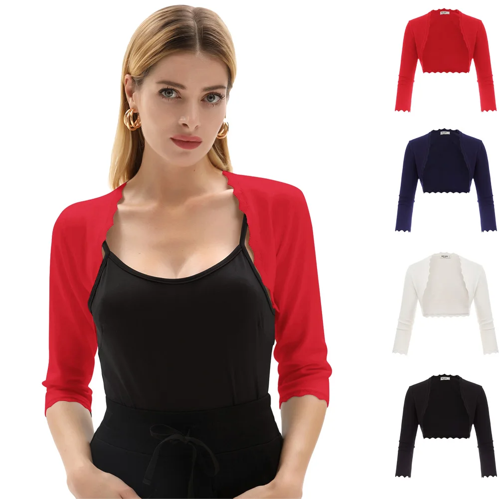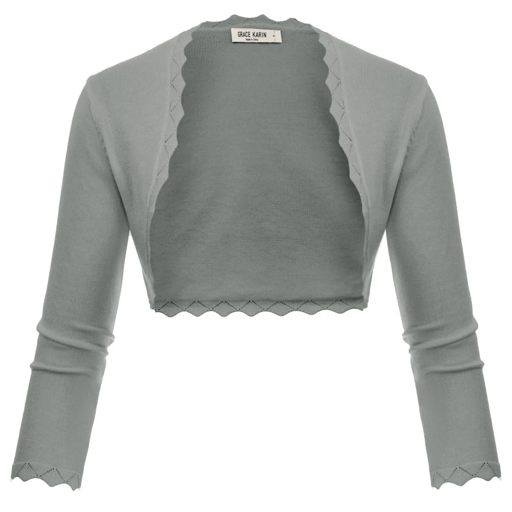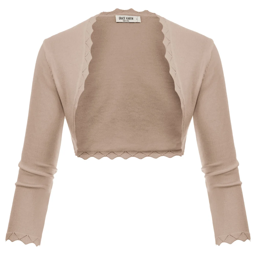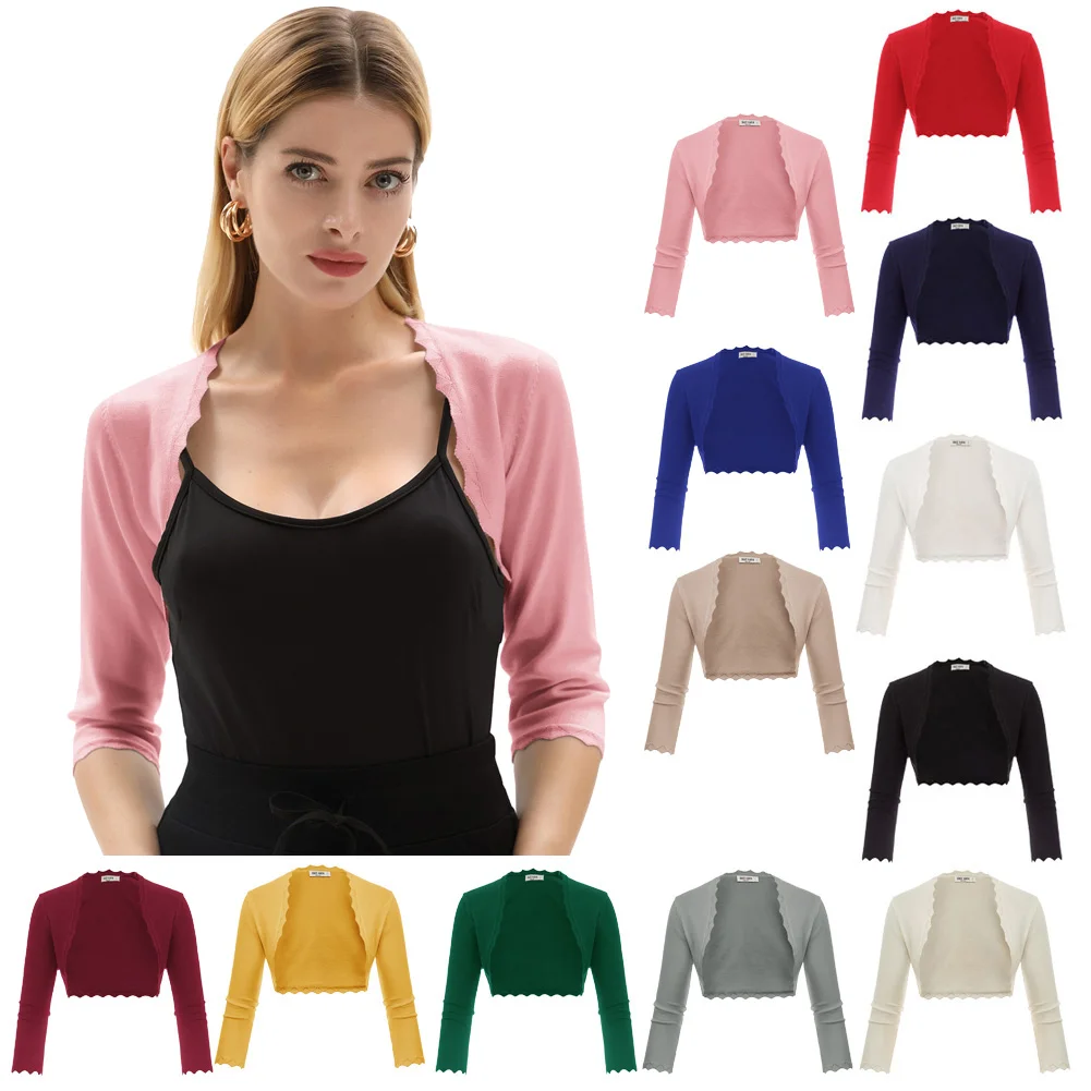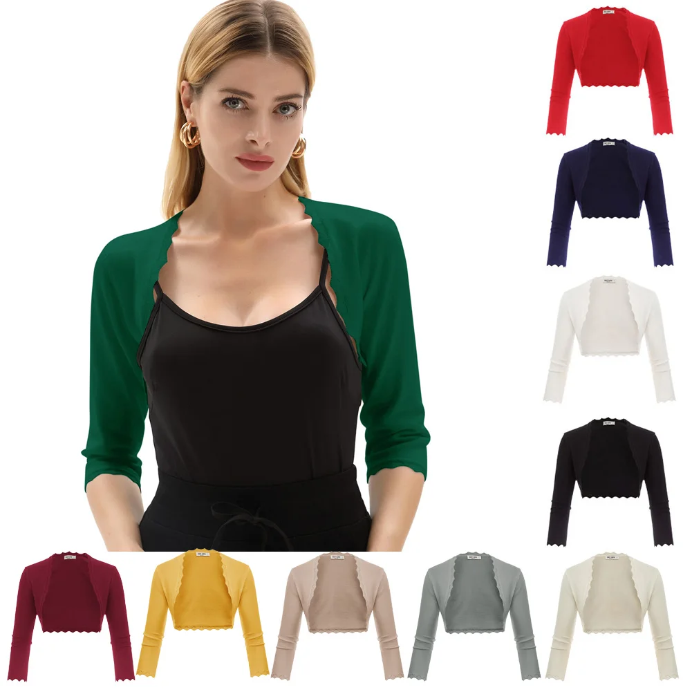 Grace Karin, женские пальто, рукав 34, открытая передняя часть, завязанное болеро с волнистыми краями, тонкие мягкие вязаные топы, модные, элегантные, новые