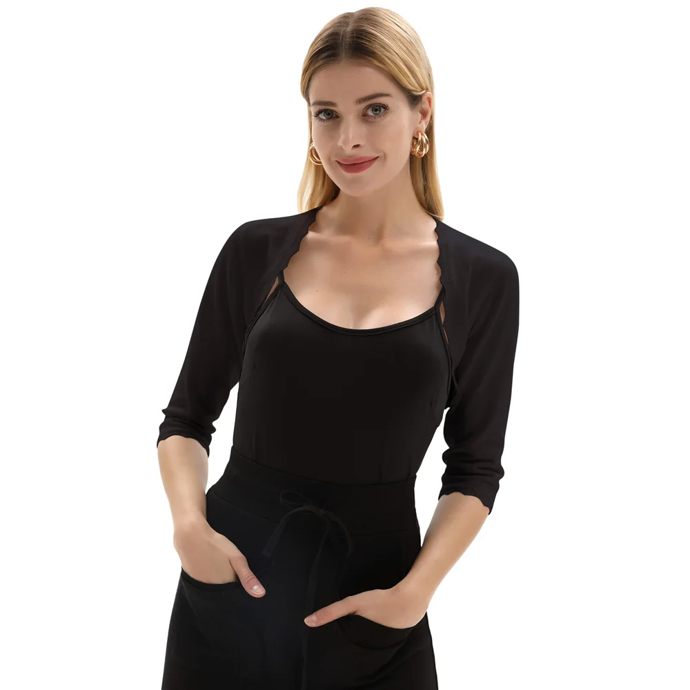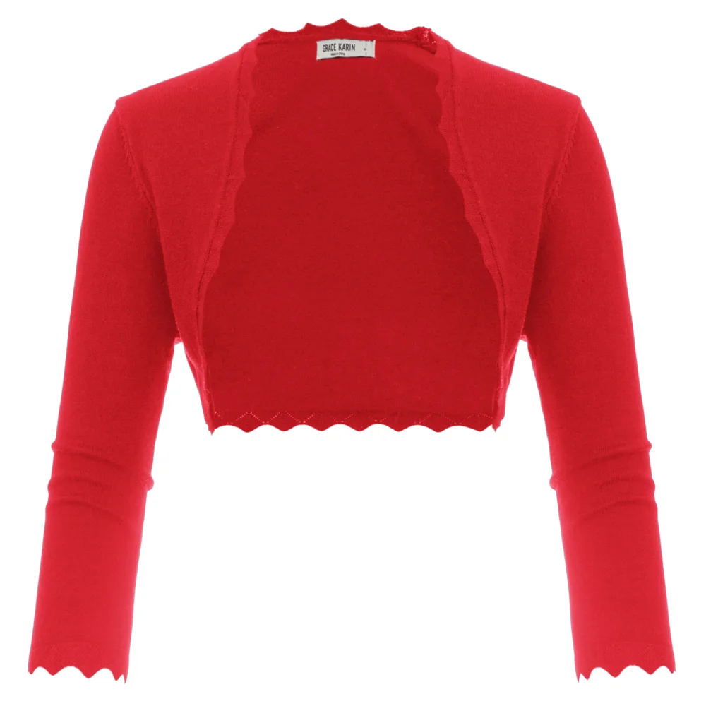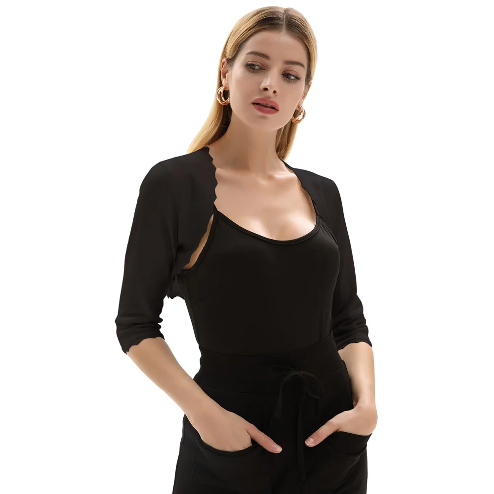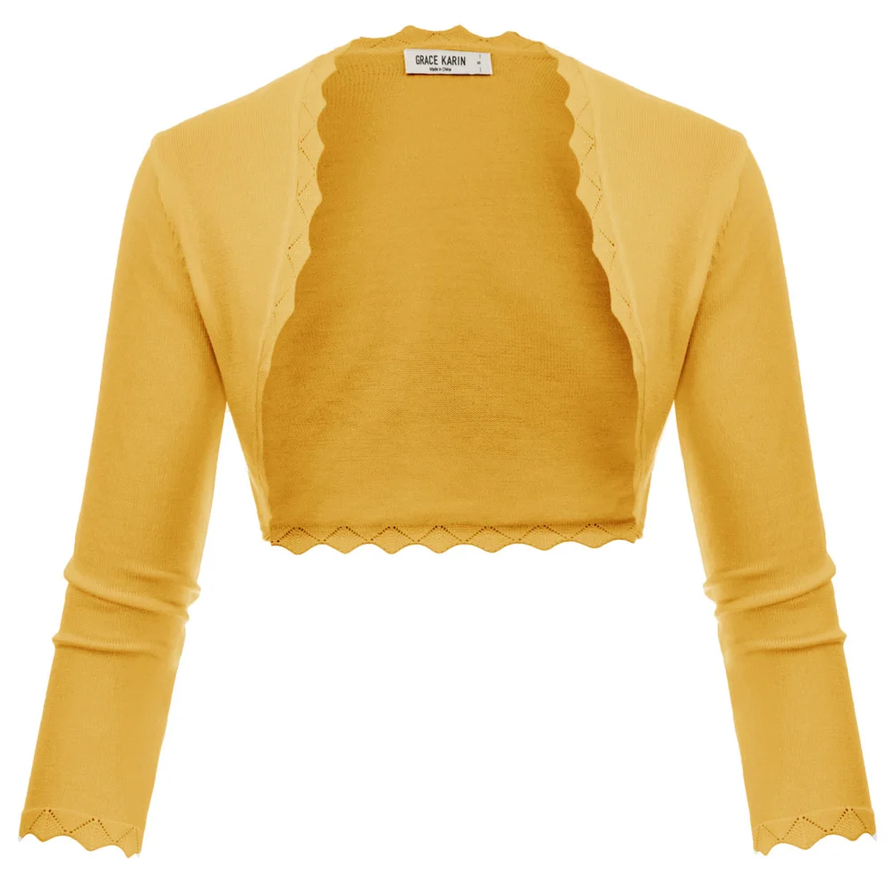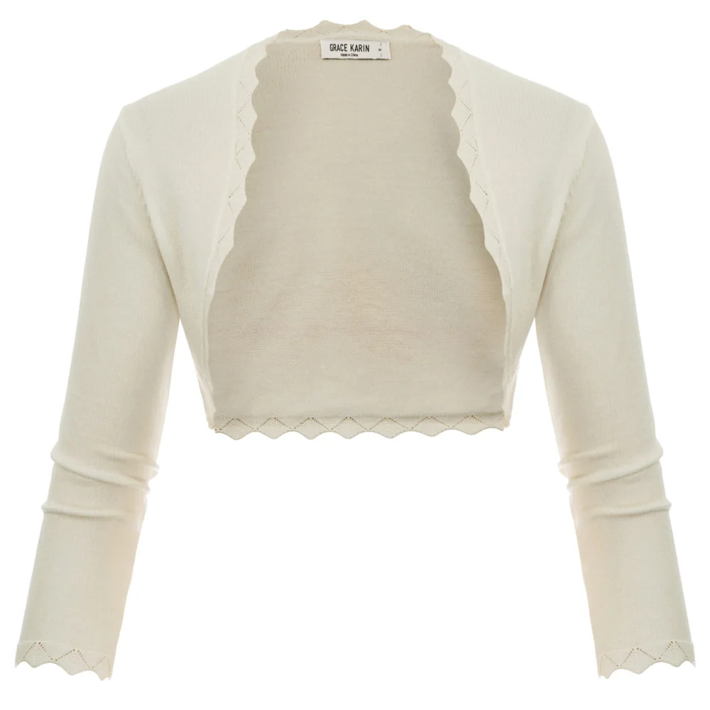 Grace Karin, женские пальто, рукав 34, открытая передняя часть, завязанное болеро с волнистыми краями, тонкие мягкие вязаные топы, модные, элегантные, новые