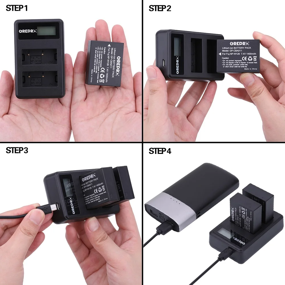 NP-W126 Аккумулятор для камеры + двойное зарядное устройство с ЖК-дисплеем
