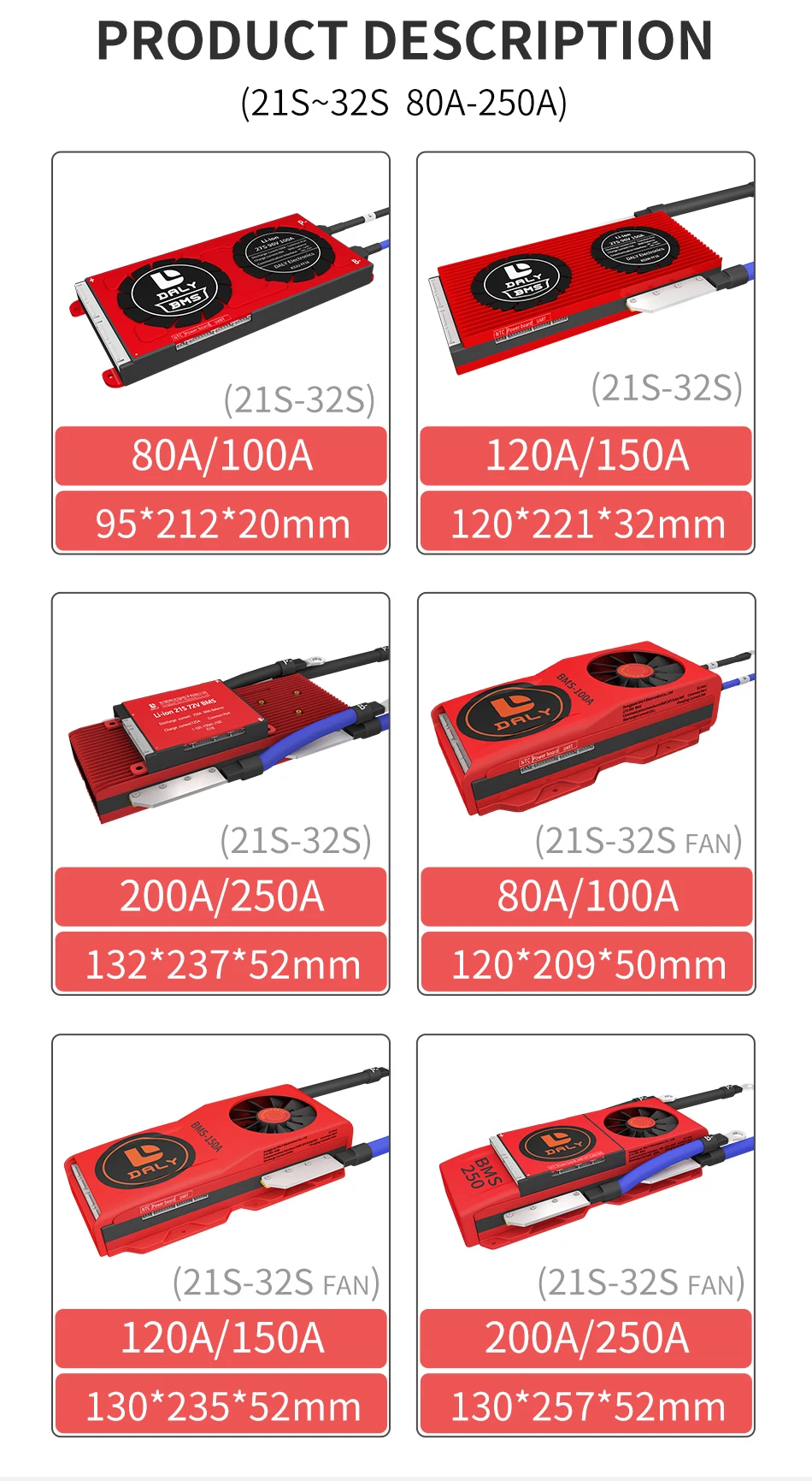 Daly BMS 24s LiFePO4 72v 30A 60A 80A 100A 120A 150A 200A 250A 300A ...