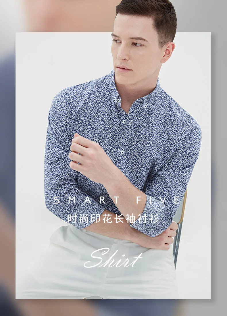 Мужская рубашка из 100% хлопка Smart Five, повседневная, с длинным ...