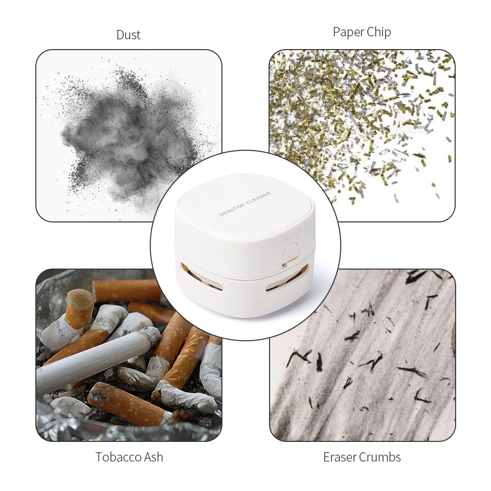1. Простой, стильный и практичный.2. Сильное всасывание, сенсорный выключатель, спиральный вентилятор, всестороннее удаление пыли3. Ветер поднимается на 360 градусов, и пыль полностью удаляется4. Спиральное ветровое лезвие с большим всасыванием, нейлоновая щетка, защищает стол5. Легко впитывает пыль, бумажные кусочки, ластики, волосы, дыню и другие обычные мелкие мусор.