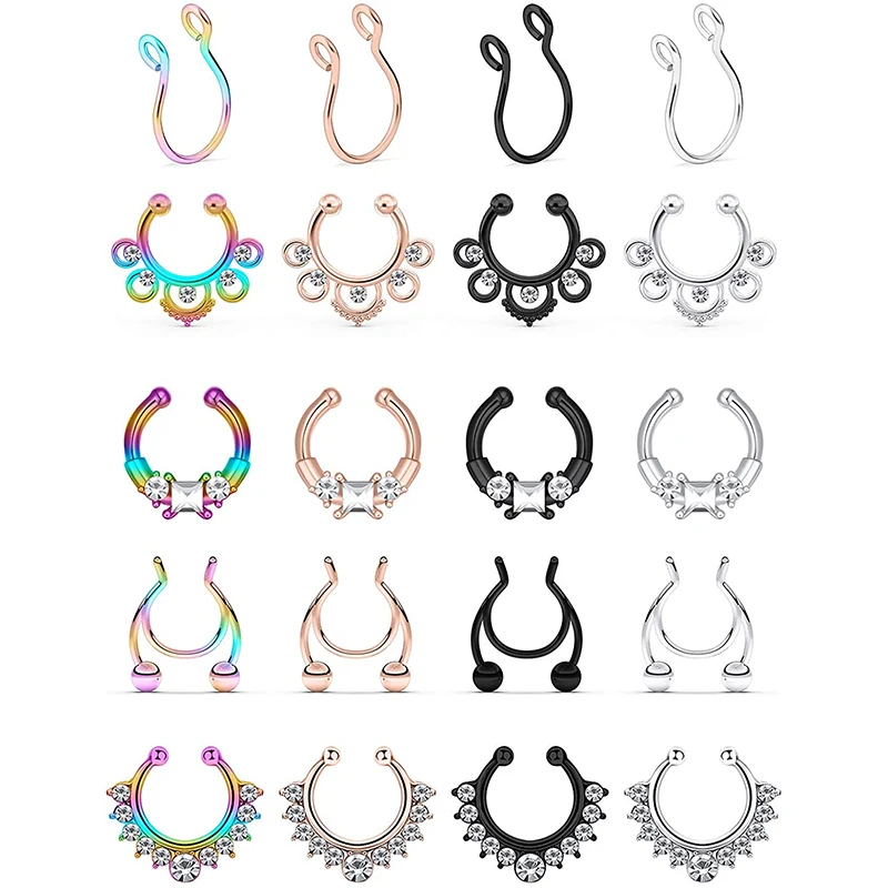 Поддельные кольца для пирсинга перегородки носа серьги-кольца Нержавеющаясталь искусственная для губ, ушей, носа кольца для пирсинга перегородки носа кольца пирсинг изделие псевдо зажим на нос кольца