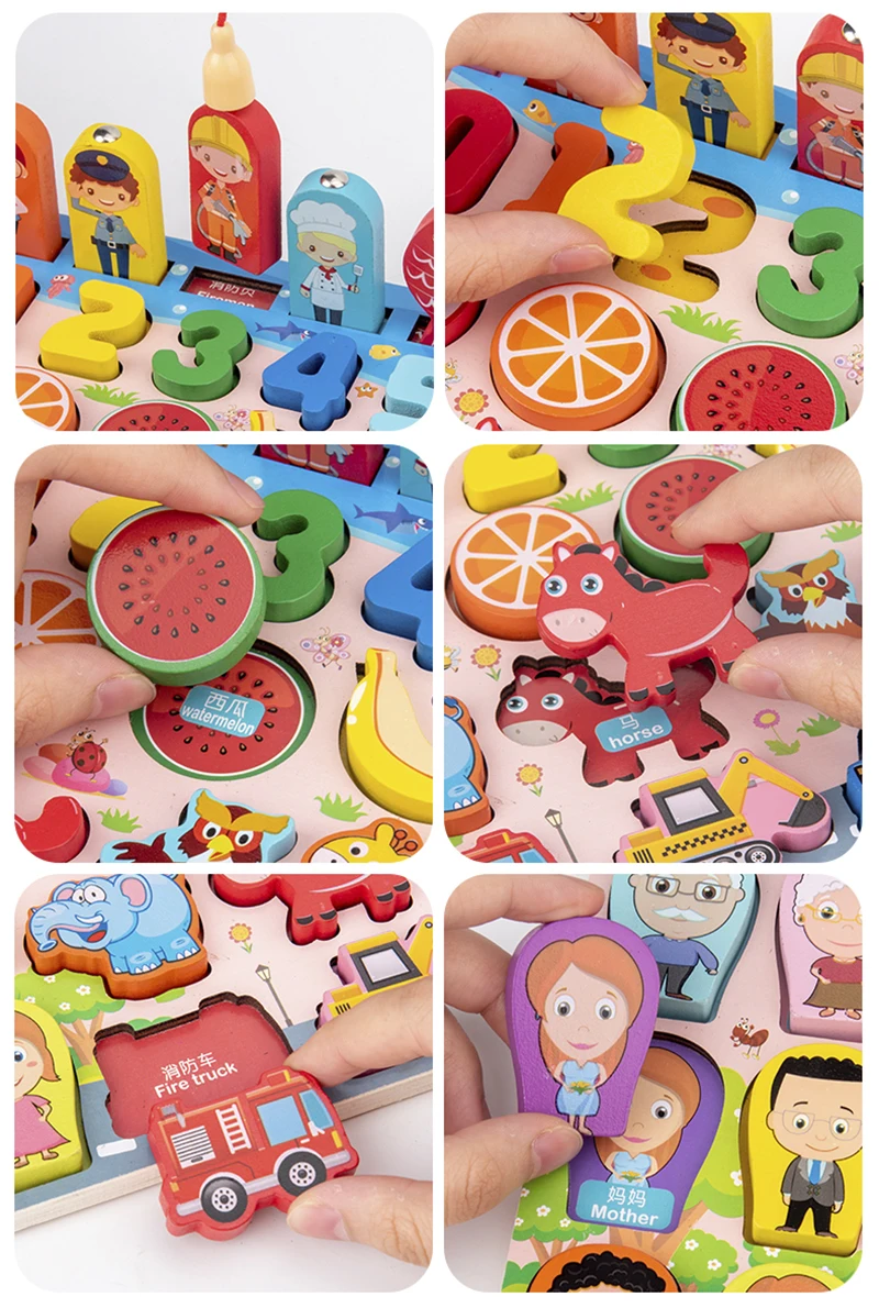 Деревянные 3d-игрушки Монтессори, Магнитная рыбалка, цифровые кубики, обучающие игрушки для детей, бизиборд, математика, для дошкольников