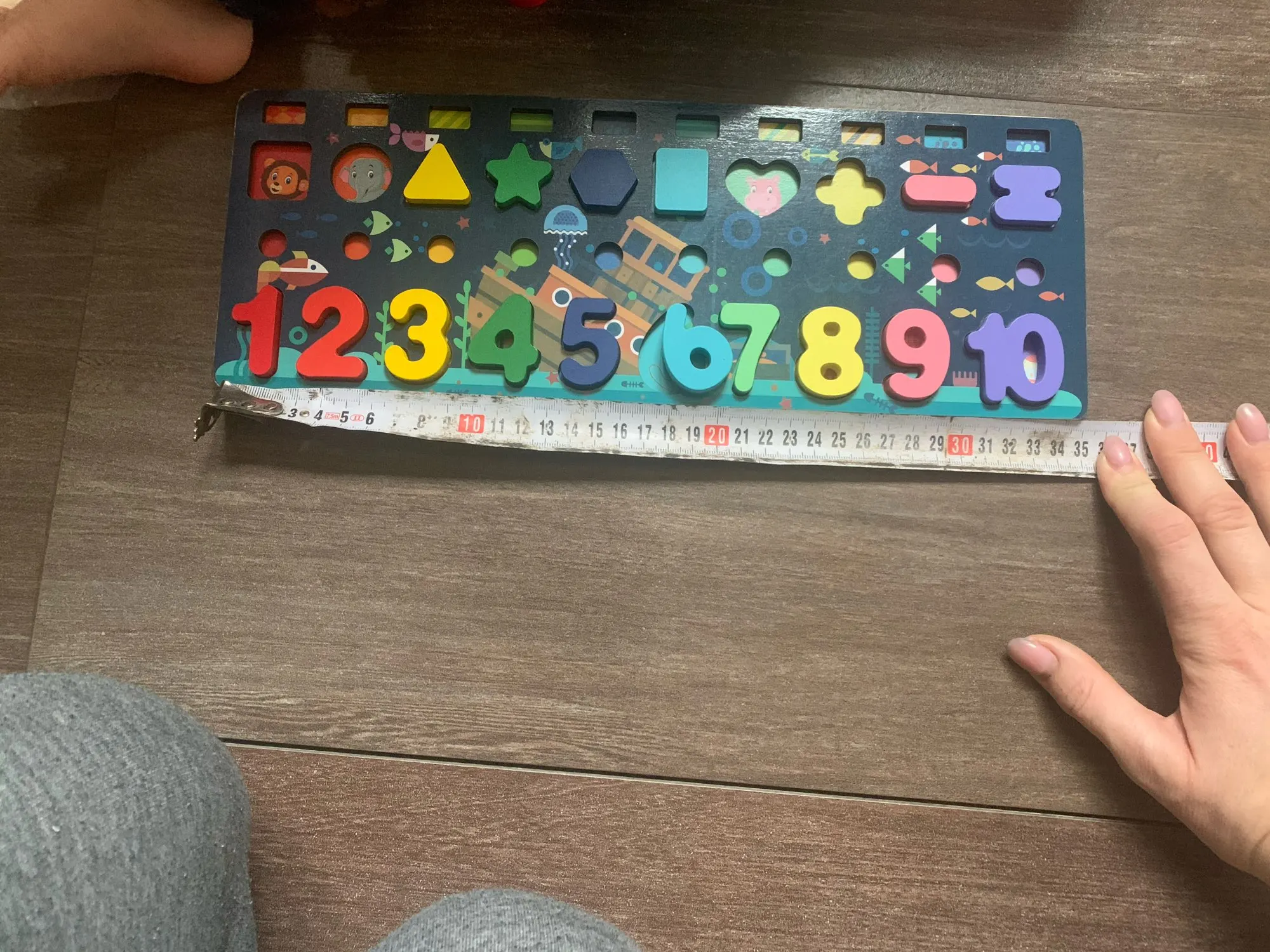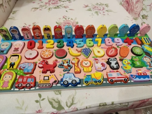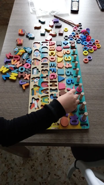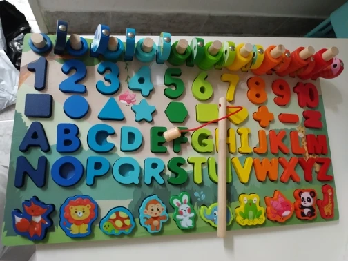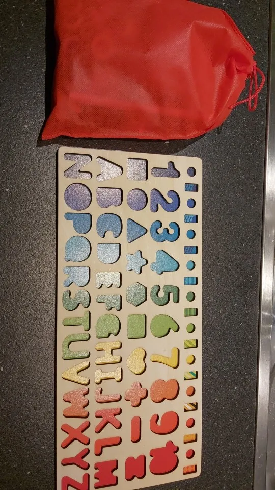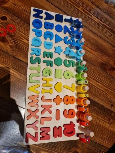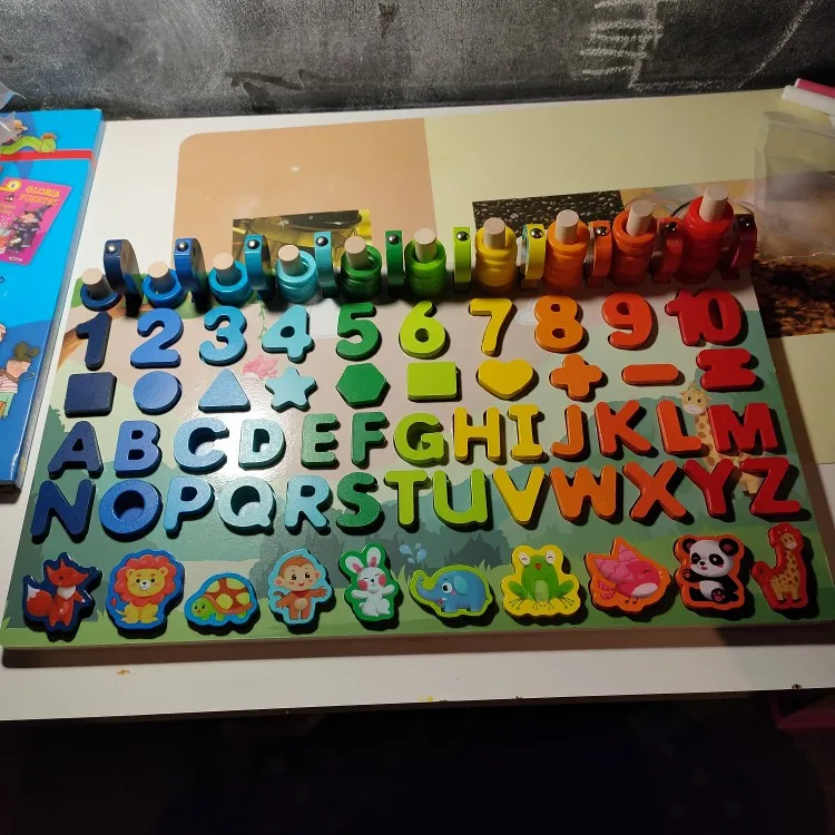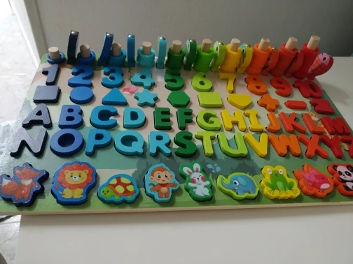 el producto ha llegado más rápido de lo que esperaba y me encanta, porque en un mismo puzle lo tiene todo y no tengo que tener unos con los números, otro con el abecedario y otro con las formas, muy práctico